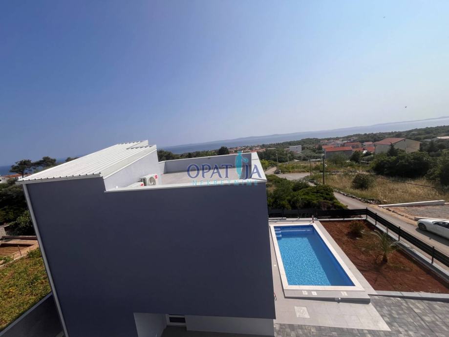 Ova moderna nekretnina nudi sve što možete poželjeti od doma na otoku Viru: izvrsnu lokaciju na traženoj južnoj strani, privatni bazen, prostranu krovnu terasu i očaravajuće zalaske sunca. Posebno se ističe prekrasan, širok pogled na more koji svakodnevno pruža osjećaj slobode i prave mediteranske atmosfere. Bilo kao kuća za odmor ili dom tijekom cijele godine, ova nekretnina oduševljava promišljenim rasporedom i visokokvalitetnom opremom.