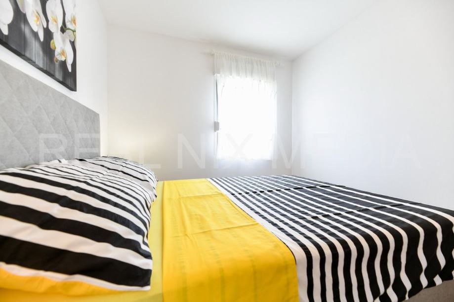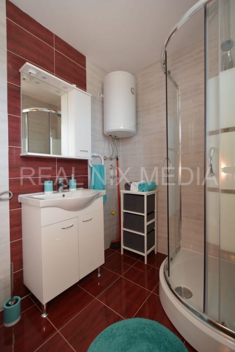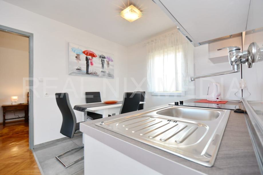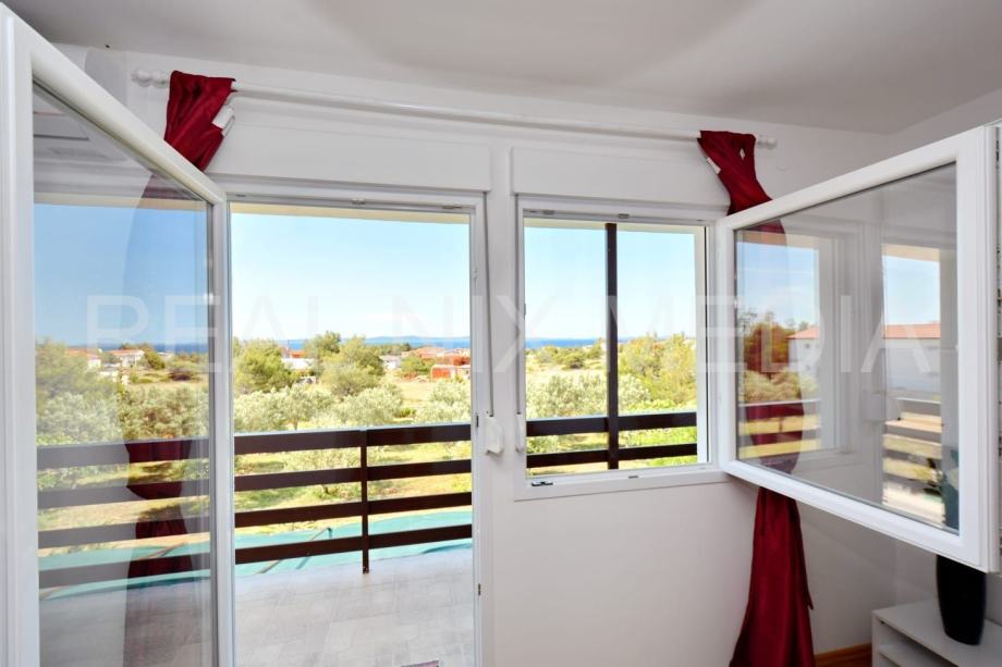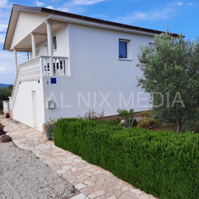 Kompletno renovirana samostojeća kuća koju sačinjavaju dvije stambene jedinice. Prizemlje se sastoji od kuhinje, blagovaonice, dnevnog boravka sa izlazom na veliku terasu, dvije spavaće sobe te kupaonica i spremište. Na katu nalazi se druga stambena jedinica koja se sastoji od kuhinje, blagovaonice, dnevnog boravka sa izlazom na balkon sa kojeg se pruža pogled na more, dvije spavaće sobe i kupaonica.