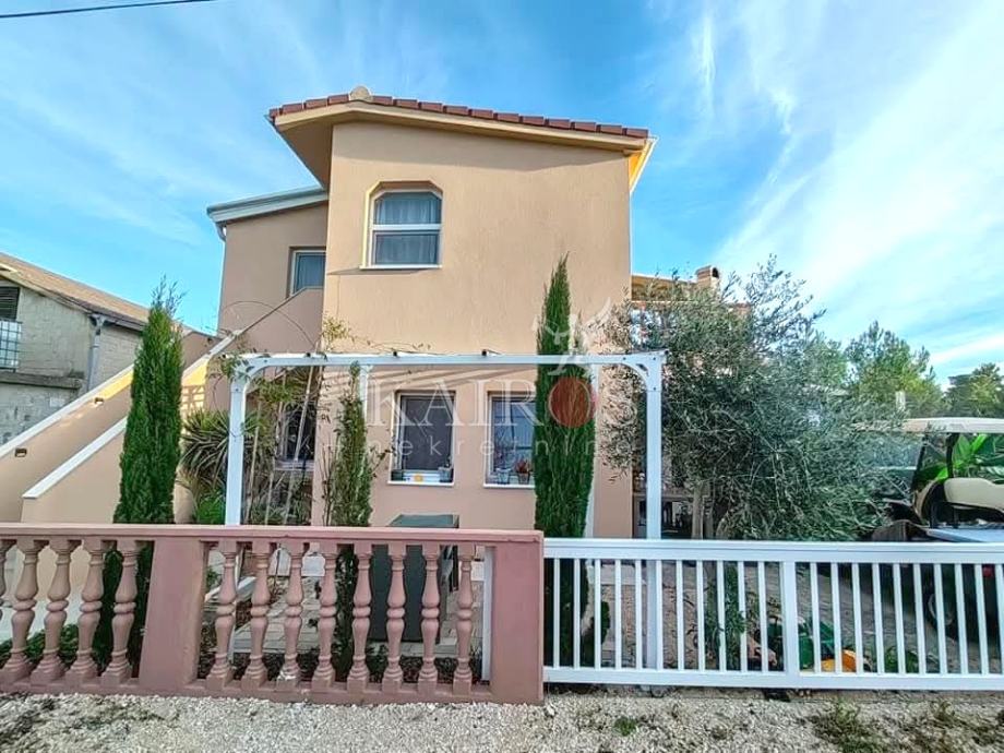 Vir, prodajemo samostojeću kuću ukupne površine 150 m2, kuća ima prizemlje i kat. U prizemlju su dva stana, jedan studio apartman, a drugi je dvosobni klasični; na prvom katu je jedan stan dvosobni s dnevnim boravkom.