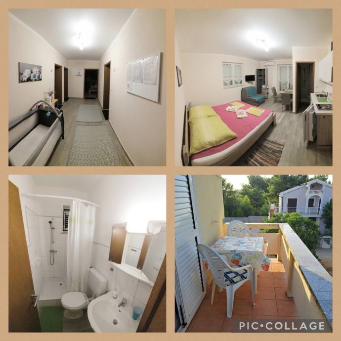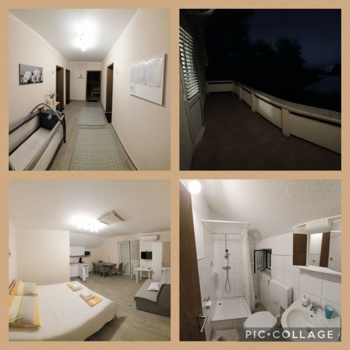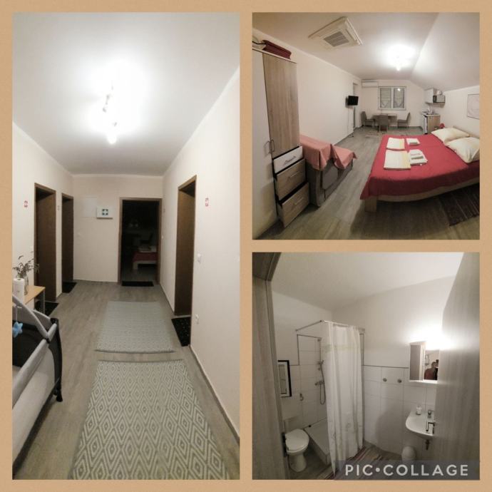 Prodaje se kuća površine 152m2, s okućnicom površine 230m2. Kuća se sastoji od 4 apartmana i to 3 apartmana za 3 osobe, te 1 apartman za 2 osobe, a svaki apartman ima balkon.