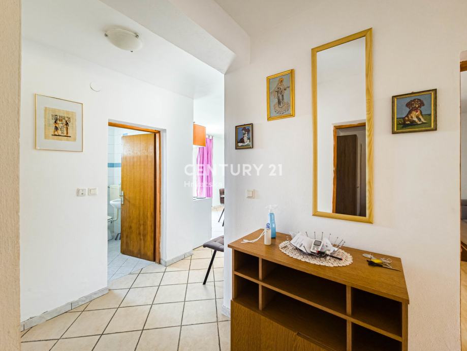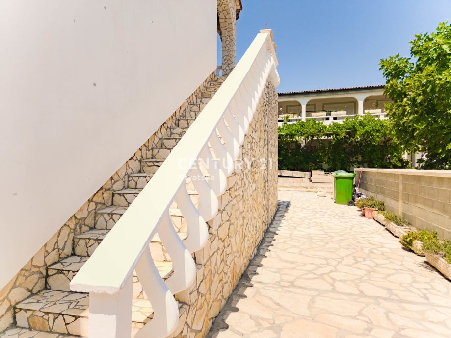 Ulaz na kat zgrade je vanjskim zasebnim stubištem. Ispred stanova nalazi se prostrana terasa.