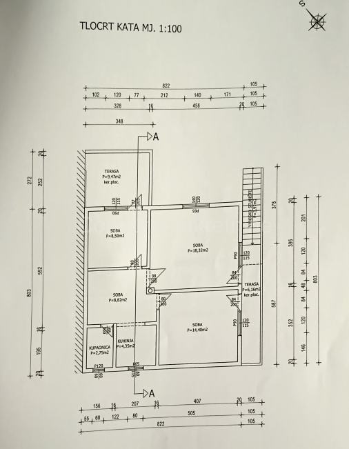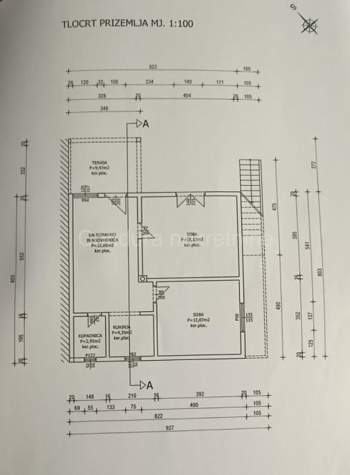 Jedan komforan apartman (75 m²) u prizemlju, s dvije spavaće sobe, kupaonicom i dnevnim boravkom.