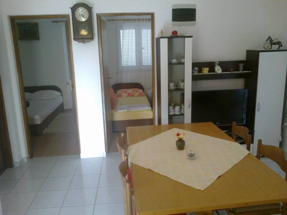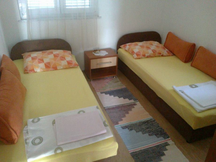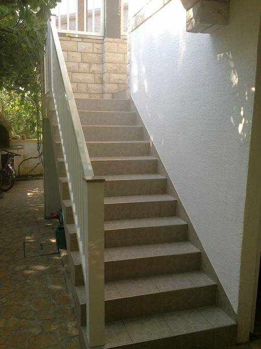 U prizemlju se nalaze dva apartmana koja se sastoje od dnevnog boravka, kuhinje, blagovaonice, dvije spavaće sobe, kupaonice i terase.