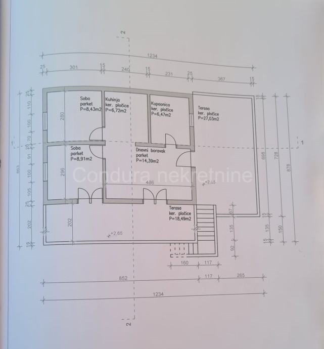 Sastoji se od 2 spavaće sobe, kuhinje s dnevnim boravkom i blagavaonice te kupaonice.