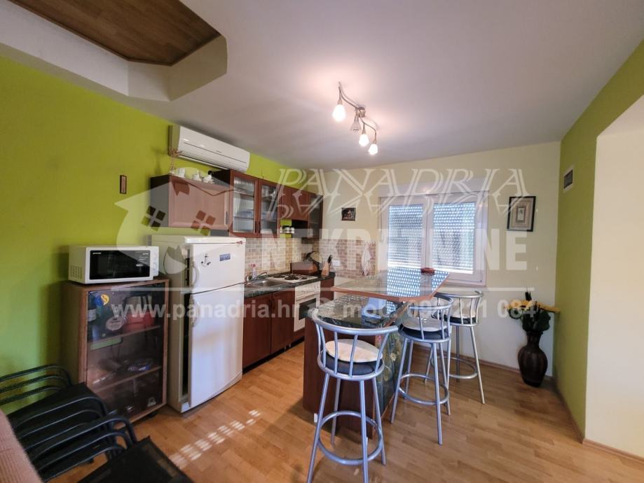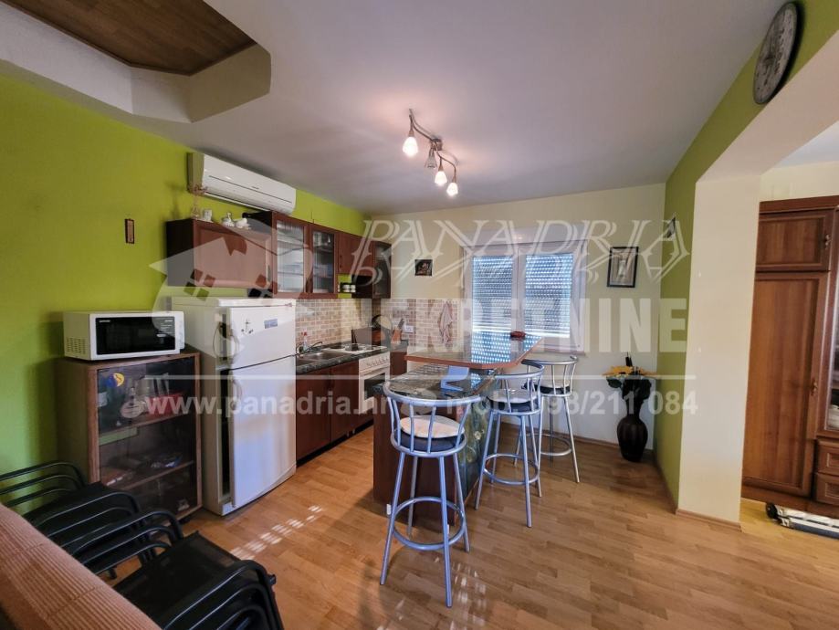 U prizemlju se nalazi apartman kojin se sastoj od kuhinje i blagoavaonice, dvije spavaće sobe i kupaonice.