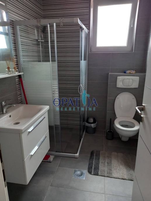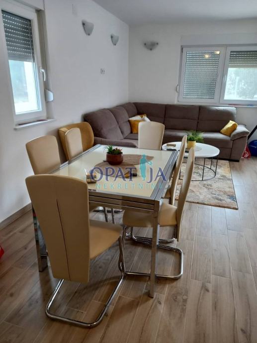 Sastoji se od dva zasebna apartmana gdje se jedan u prizemlju a drugi na katu nalazi. Oba apartmana imaju odvojene priključke za struju a namještena su novijim namještajem koji je kompletno uključen u prodajnu cijenu. Kuća se nalazi na parceli od 197 m2 a dokupljeno je još 100 m2 za parkiralište tako da je sve ukupna okućnica veličine 297 m2.