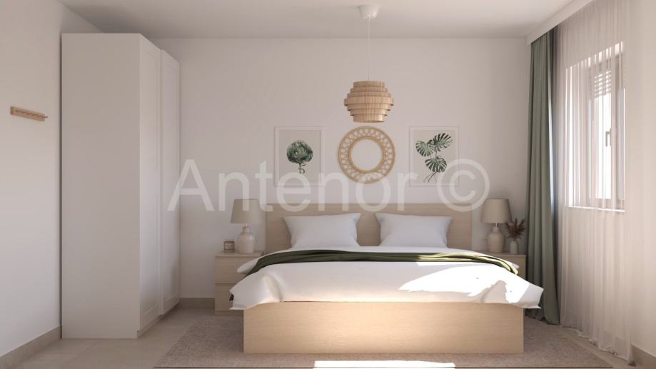 Kuća je izgrađena na zemljištu površine 402m2. Kuća je tlocrtne stambene površine od 148,35 m2. U dvorištu se nalazi i bazen od 19 m2. Kuća se sastoji od dva stana i garaže. U prizemlju se nalazi garaža i jedan stan: predprostor, kuhinja sa blagovaonicom, dnevni boravak, spavaća soba, kupaonica i natkrivena terasa. Unutarnje stepenice vode na kat gdje se nalazi stan sa 2 spavaće sobe, hodnik, kupaonica, kuhinja sa blagovaonicom, dnevni boravak i natkrivena terasa.