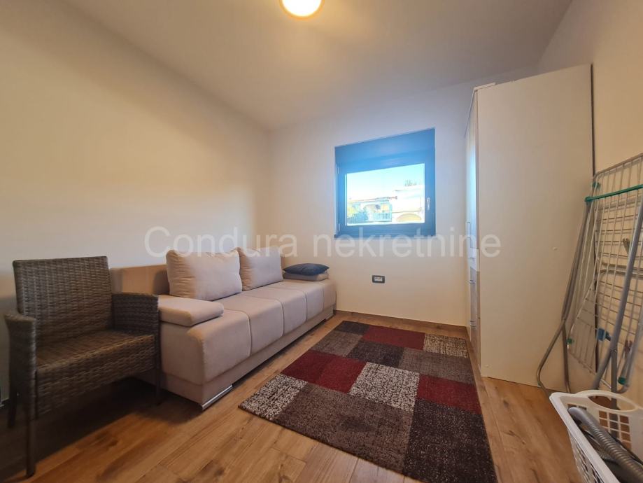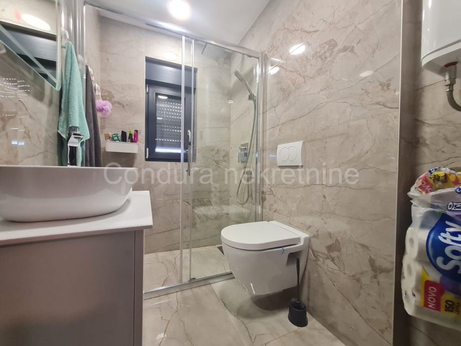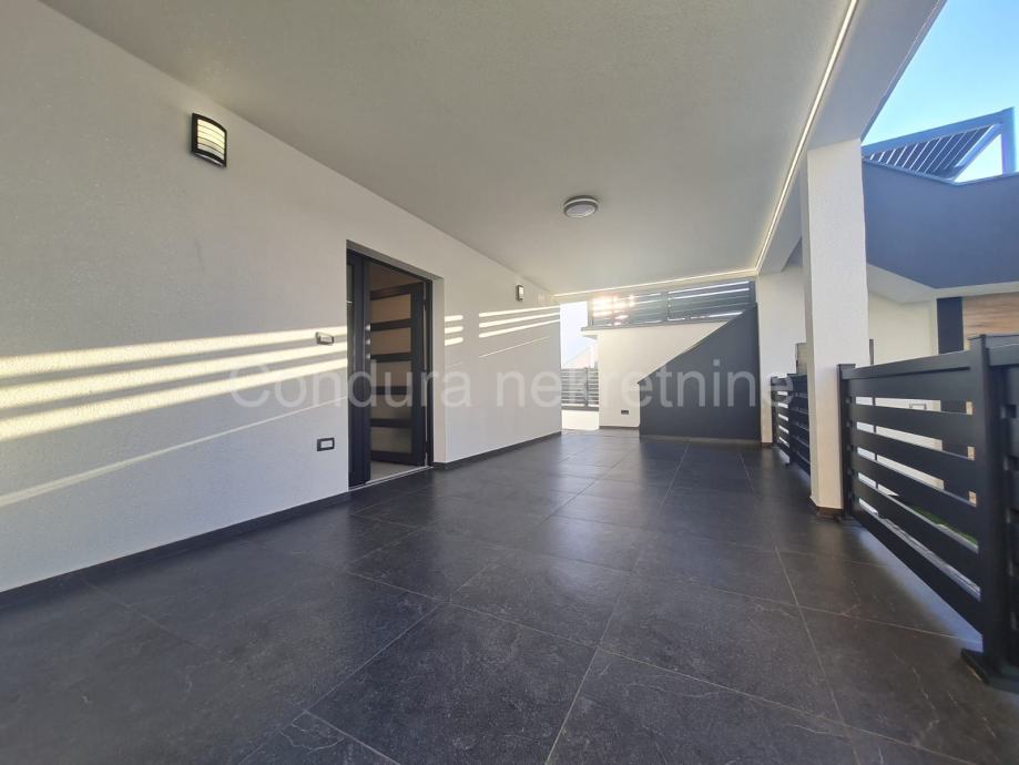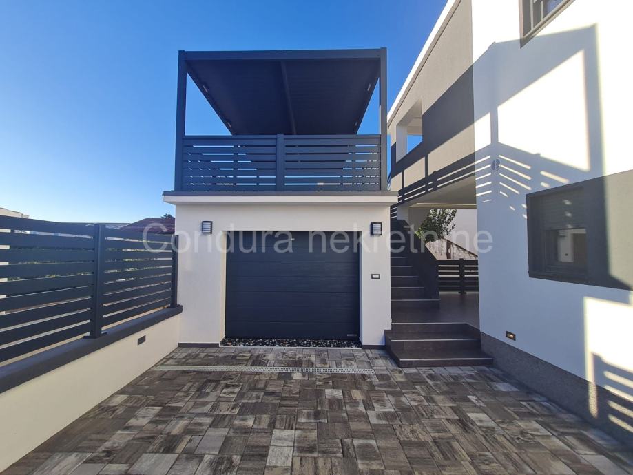 U prizemlju se nalazi i garaža površine 21 m2 u kojoj su provedene instalacije struje i vode. Iznad garaže se nalazi velika nenatkrivena terasa.
