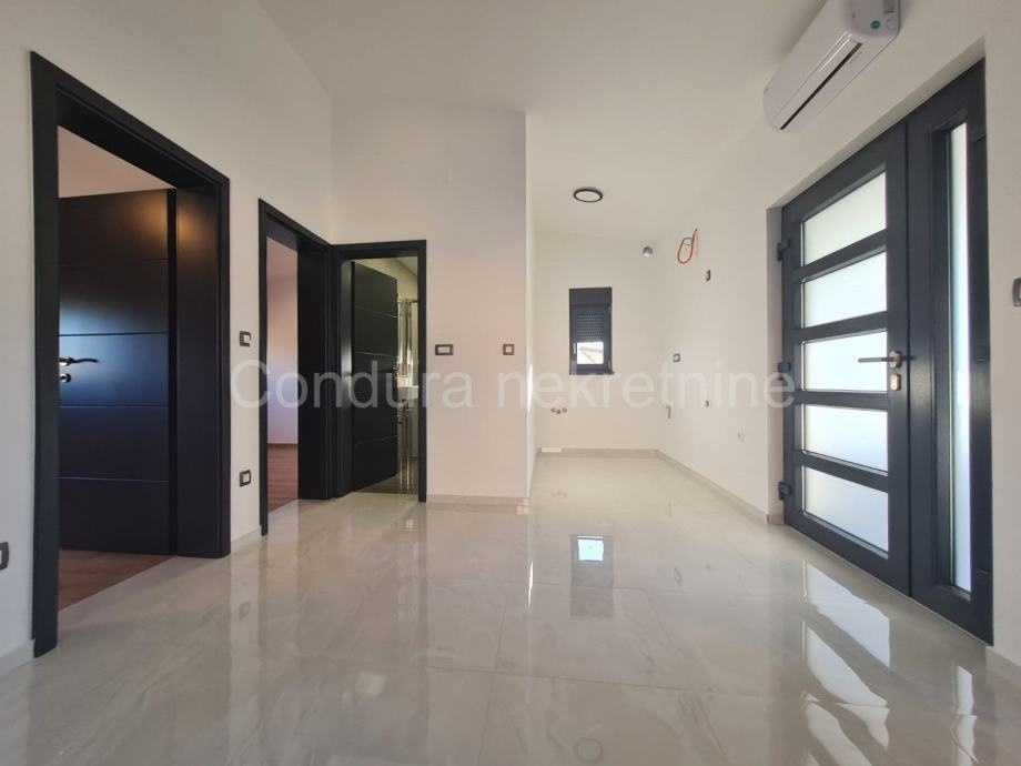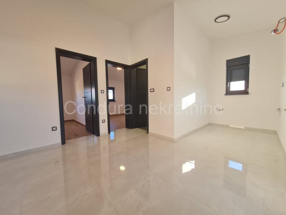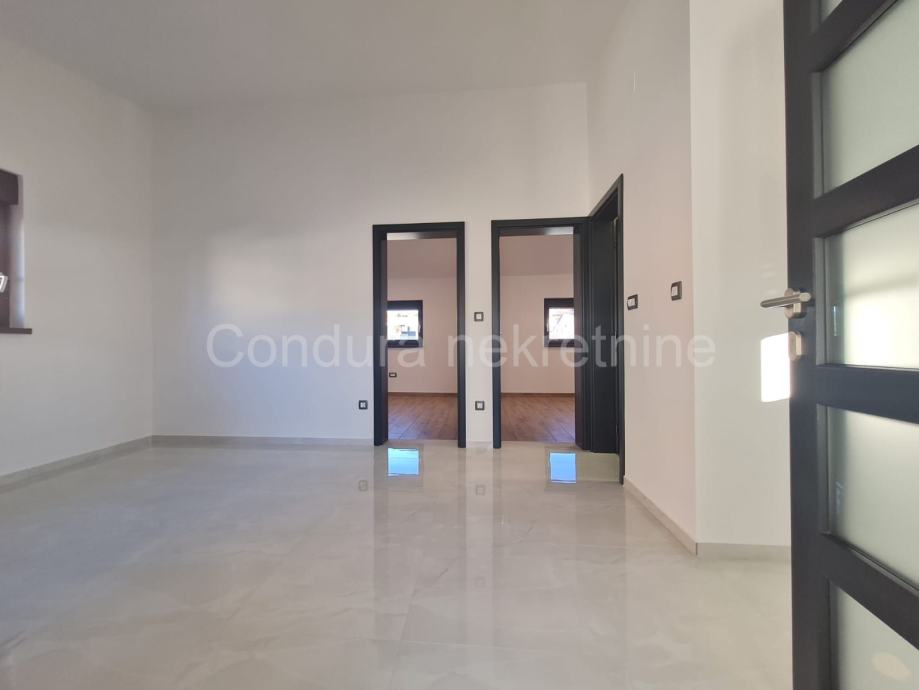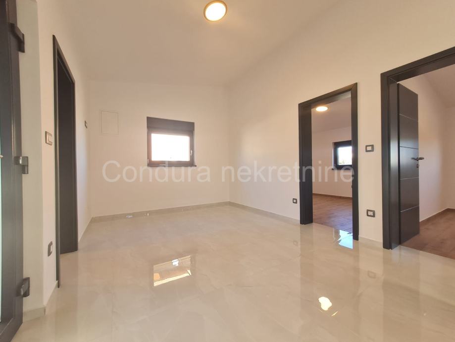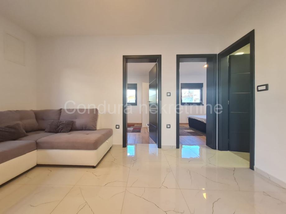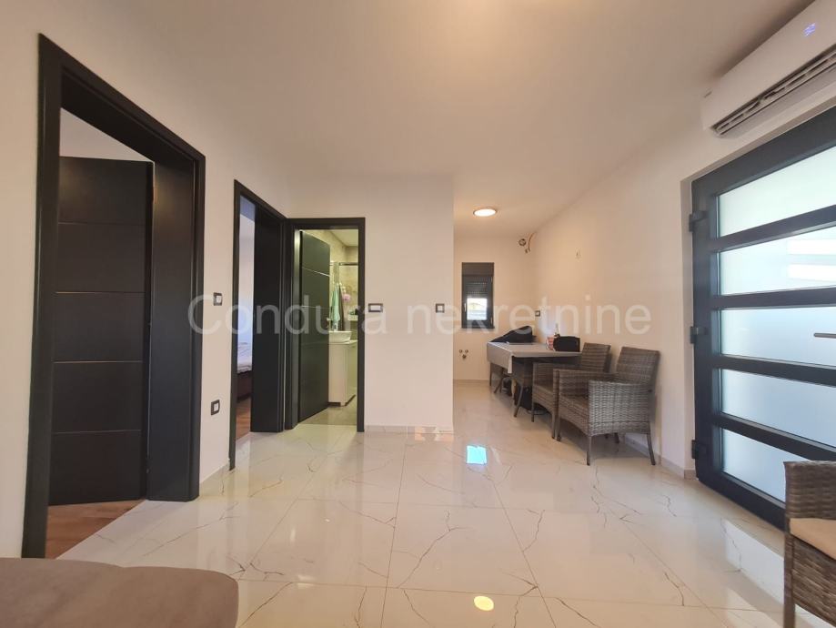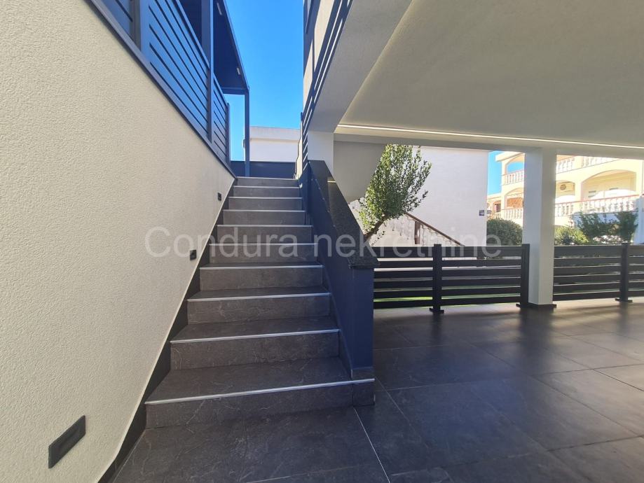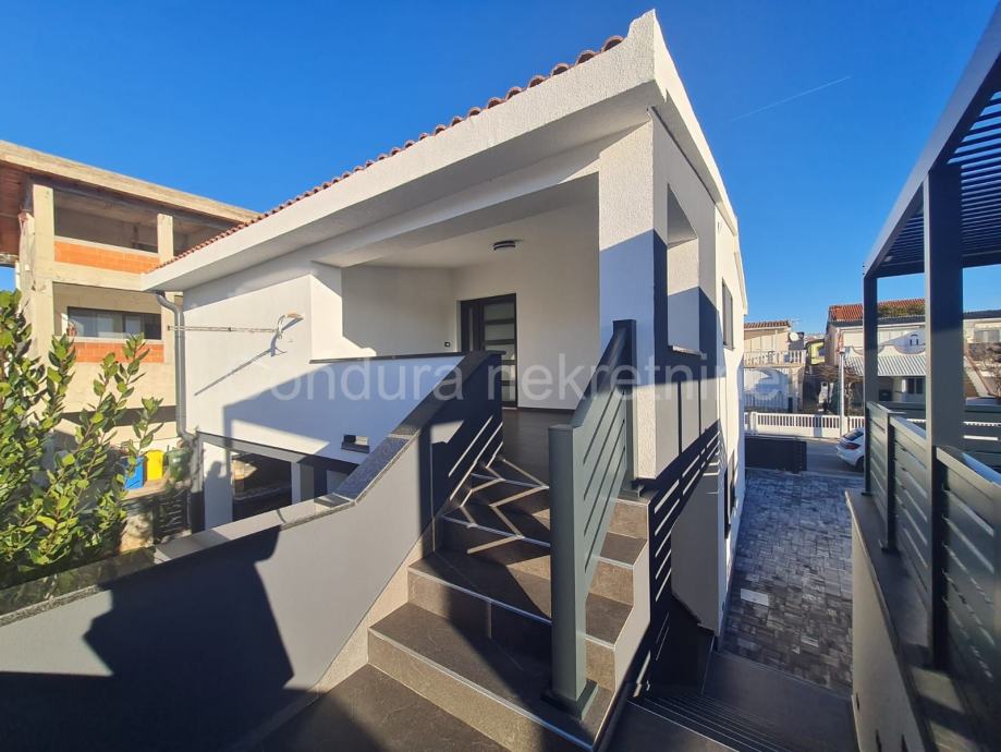 Kuća ima površinu 144 m2 te se sastoji od prizemlja i kata sa po jednim stanom na svakom katu. Stan u prizemlju se sastoji od prostrane natkrivene terase, dvije spavaće sobe, kupaonice te dnevnog dijela s kuhinjom. Vanjskim stubištem se ide na gornju etažu na kojoj je stan sa tri spavaće sobe, kupaonicom, dnevnim dijelom s kuhinjom te također velikom natkrivenom terasom.