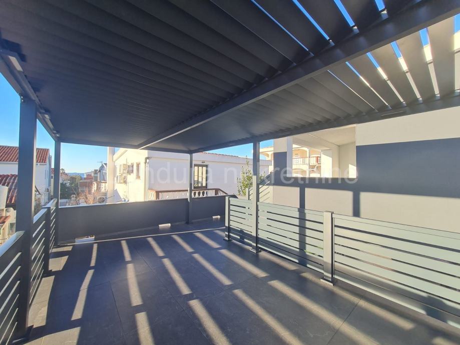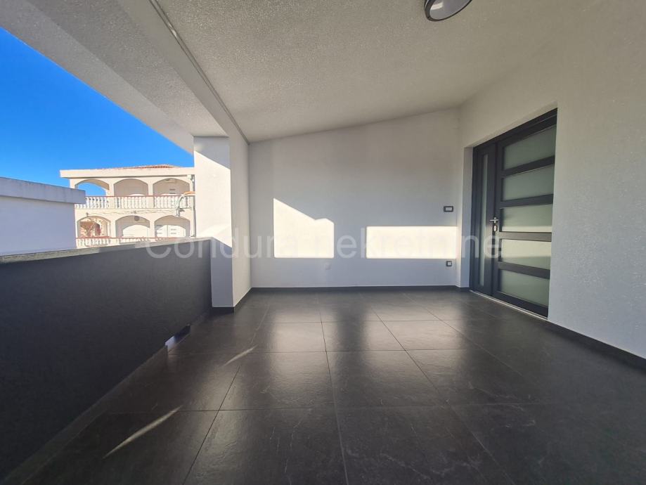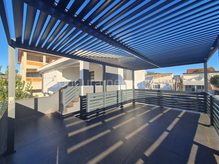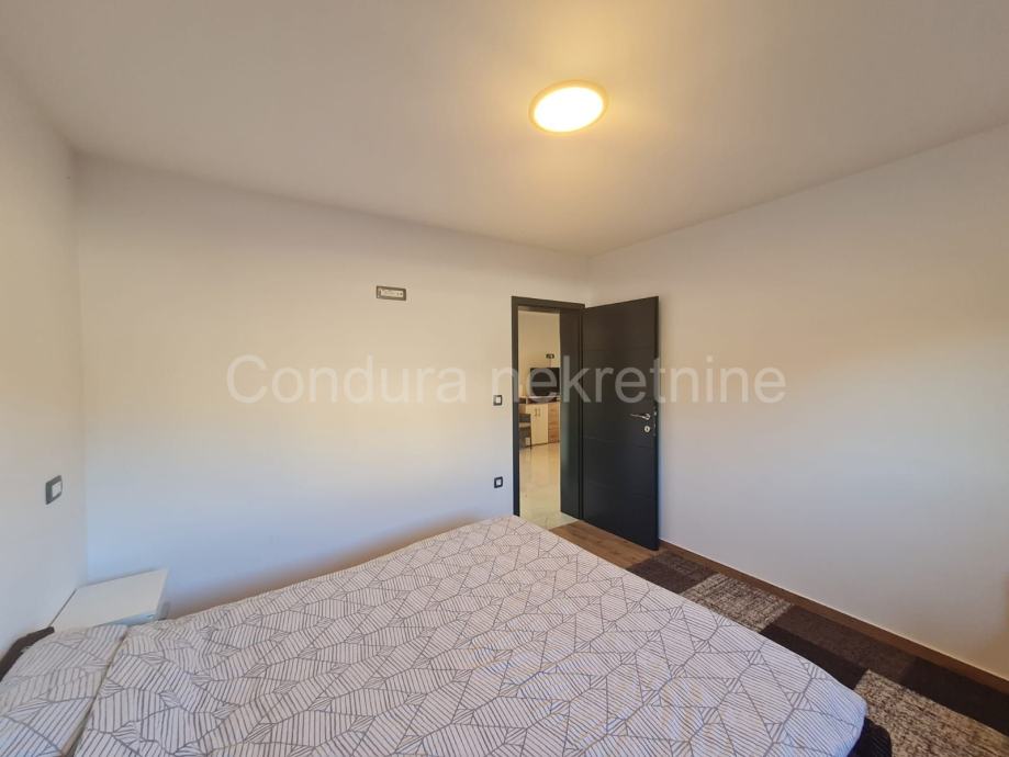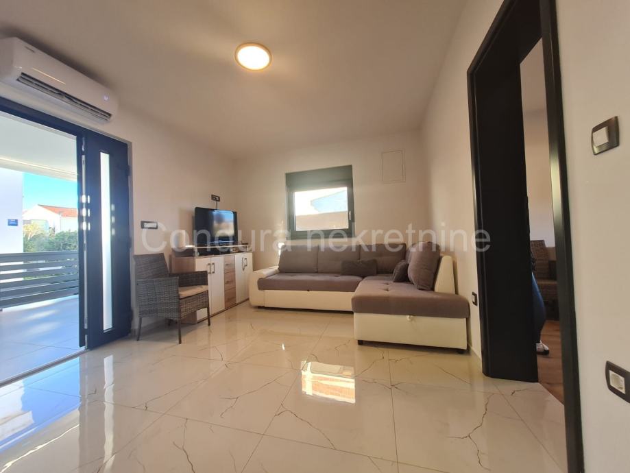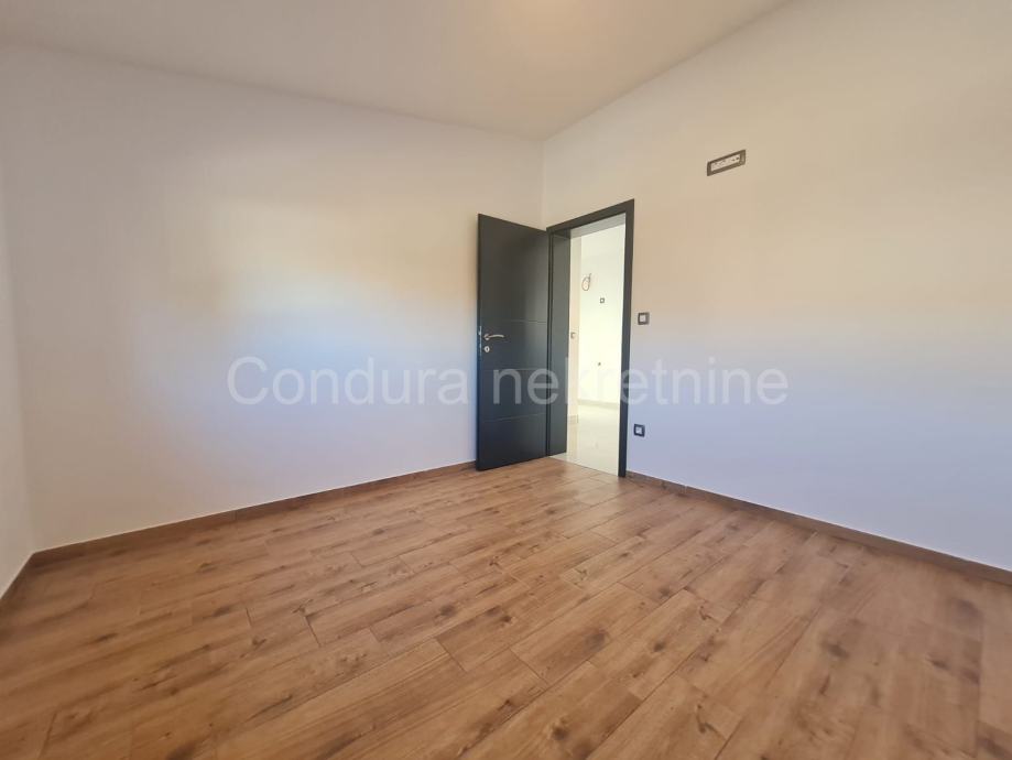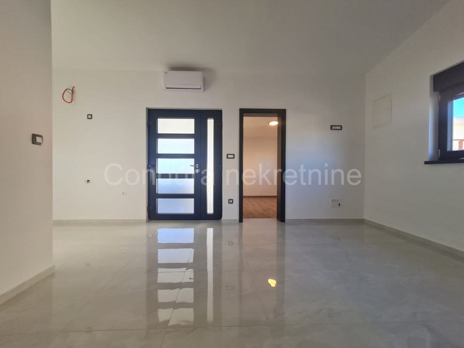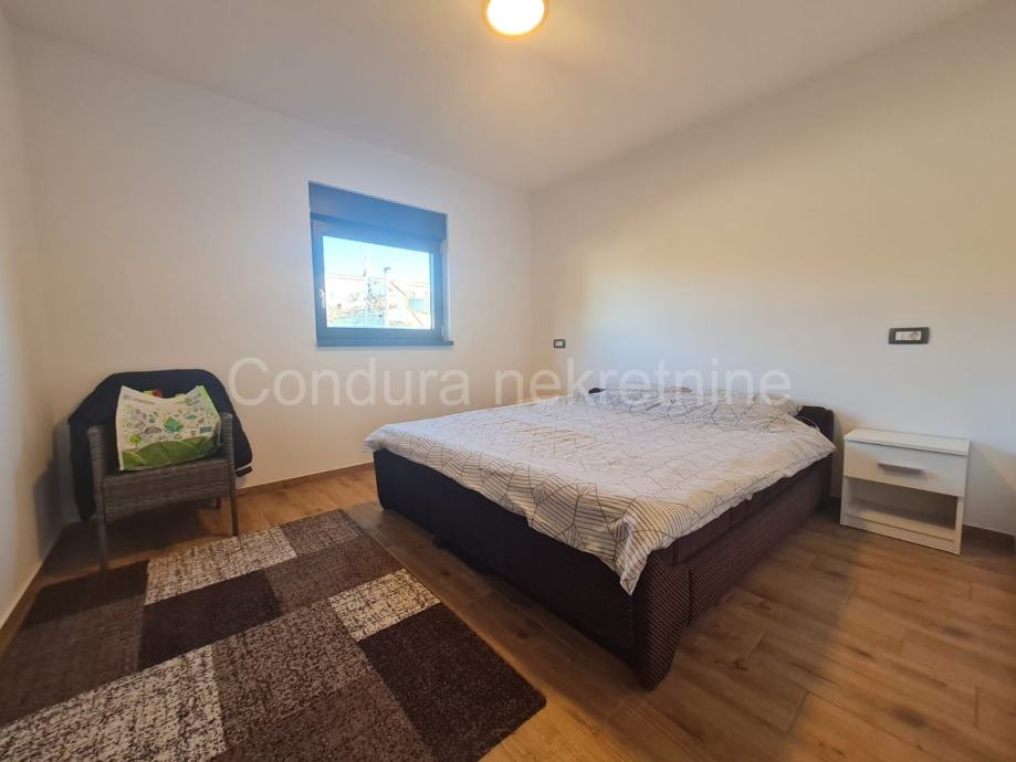 Kuća ima površinu 144 m2 te se sastoji od prizemlja i kata sa po jednim stanom na svakom katu. Stan u prizemlju se sastoji od prostrane natkrivene terase, dvije spavaće sobe, kupaonice te dnevnog dijela s kuhinjom. Vanjskim stubištem se ide na gornju etažu na kojoj je stan sa tri spavaće sobe, kupaonicom, dnevnim dijelom s kuhinjom te također velikom natkrivenom terasom.