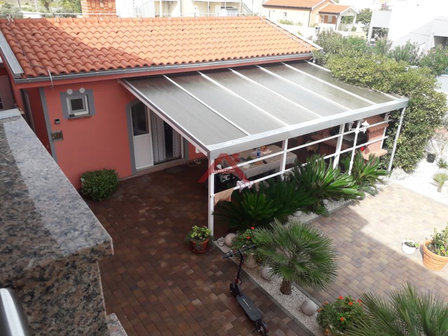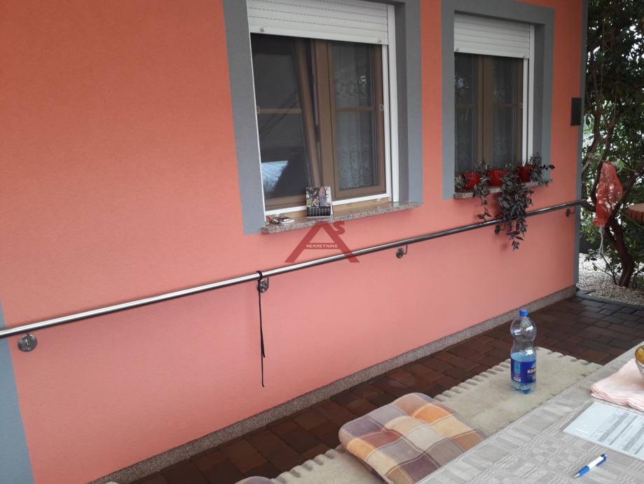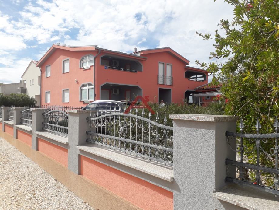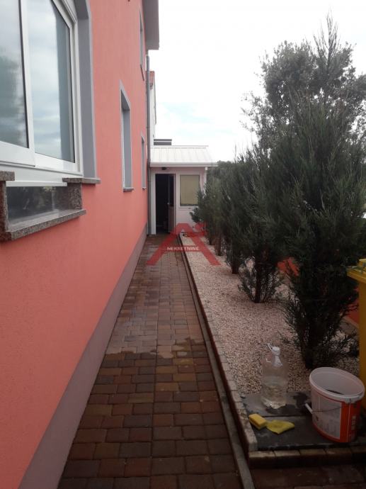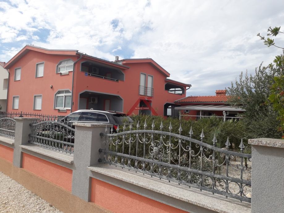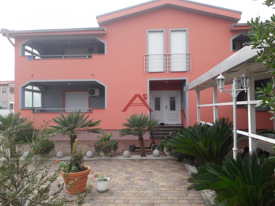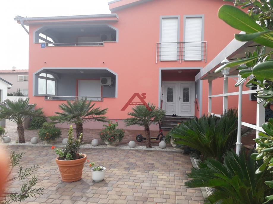 U kući se nalaze 4 apartmana, od kojih su 2 u prizemlju kuće, a druga 2 su na katu, a do njih vode unutarnje stepenice. Apartmani su svi identičnog rasporeda i identično su namješteni. Kuća je orijentirana prema sjeverozapadu, a sa svih terasa je pogled na more i Velebit. Terase su natkrivene. Stepenište, hodnici i klupčice na ogradama i na terasama su od granita. Ograda na terasama te na stepeništu je od inoksa. Vanjska ograda je od kovanog željeza. U svim sobama u kući i u kupaonicama je postavljena talijanska keramika. Sav namještaj u kući je od Slavonske hrastovine i rađen po mjeri kao i sva sobna vrata. Vanjska stolarija je PVC-e Njemačke proizvodnje. Svaki apartman ima oko 85 m2 neto površine. Kuća ima postavljeno centralno grijanje na lož ulje, a spremnik za njega je podzemni. Topla voda za kuću se dobiva preko solarnih ploča. Fasada je stiropor 12 cm, a krov je crijep. Kuća je toplotno i hidro izolirana, a zidana je termo blokom. Voda se koristi iz vlastite bušotine i odlična je, a odvod je po svim propisima napravljena septička jama. U dvorištu se nalazi još jedna manja kuća od 40 m2. Kućica je studio apartman od kuhinje dnevne i spavaće sobe u jedno te vanjske kupaonice sa wc-eom i zasebnog tuša. U dvorištu se nalazi garaža i parkirno mjesto za čamac, a vlasnik kuće na moru ima svoj vlastiti vez za čamac. Parkirnih mjesta u dvorištu ima 8.