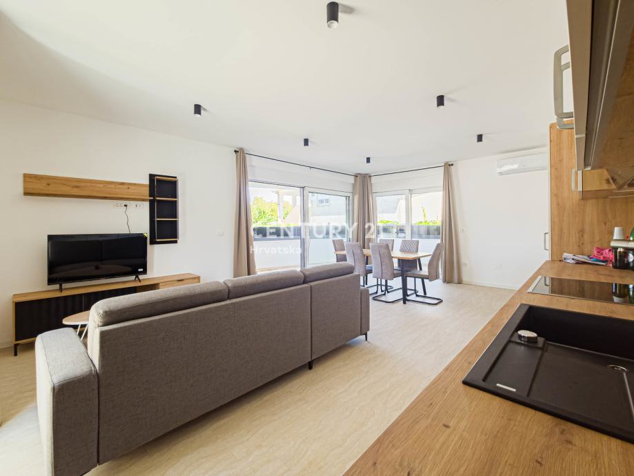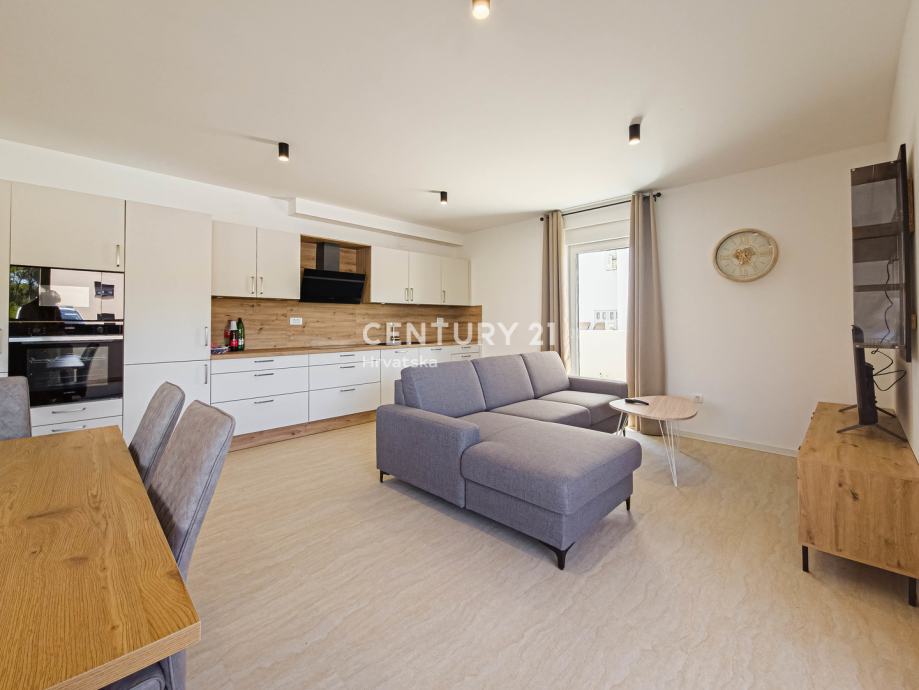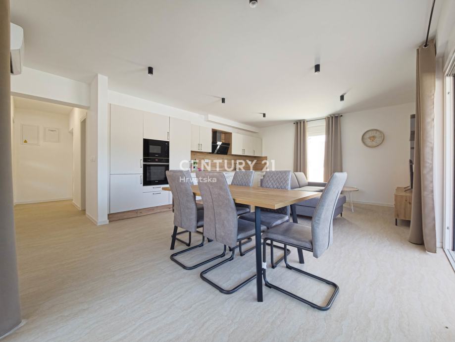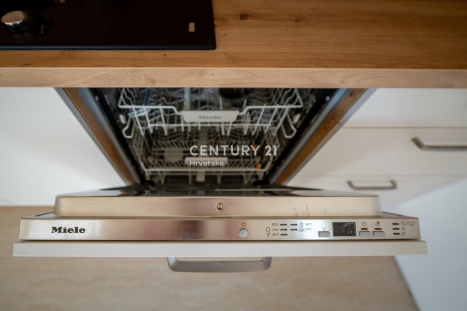 Stan se prodaje potpuno namješteni i opremljen te je odmah useljiv: kuhinja po mjeri njemačkog proizvođača sa ugrađenim uređajima: veliki hladnjak sa ledenicom, ploča za kuhanje, napa, pećnica, mikrovalna, perilica suđa, blagovaonski stol i stolice, sjedeća garnitura u dnevnom prostoru, stolić, TV prijemnik, vrtna garnitura, opremljene spavaće sobe sa boxspring krevetima i ormarima, te noćnim ormarićem, opremljene kupaonice.