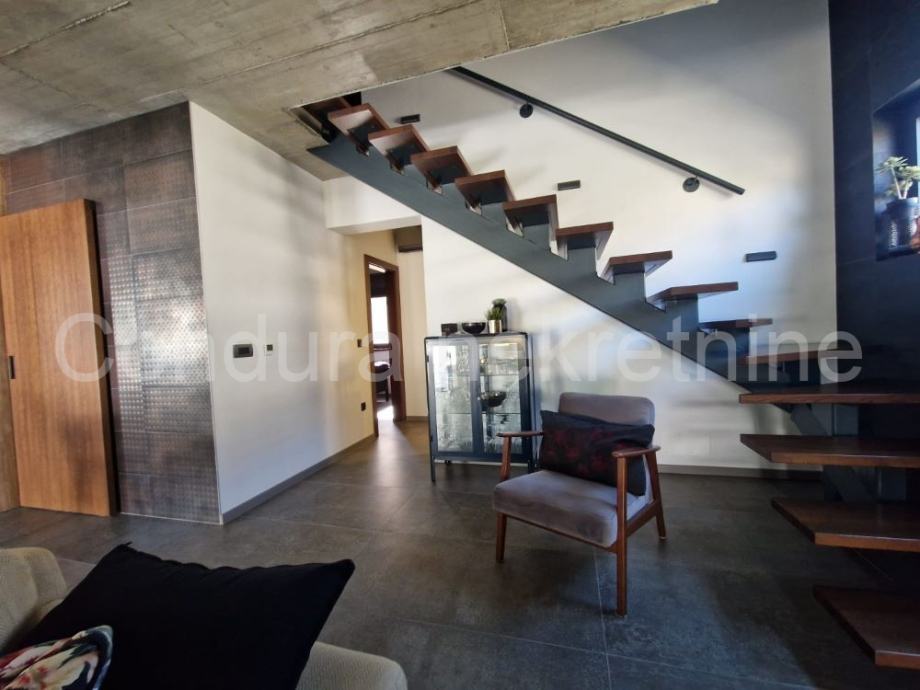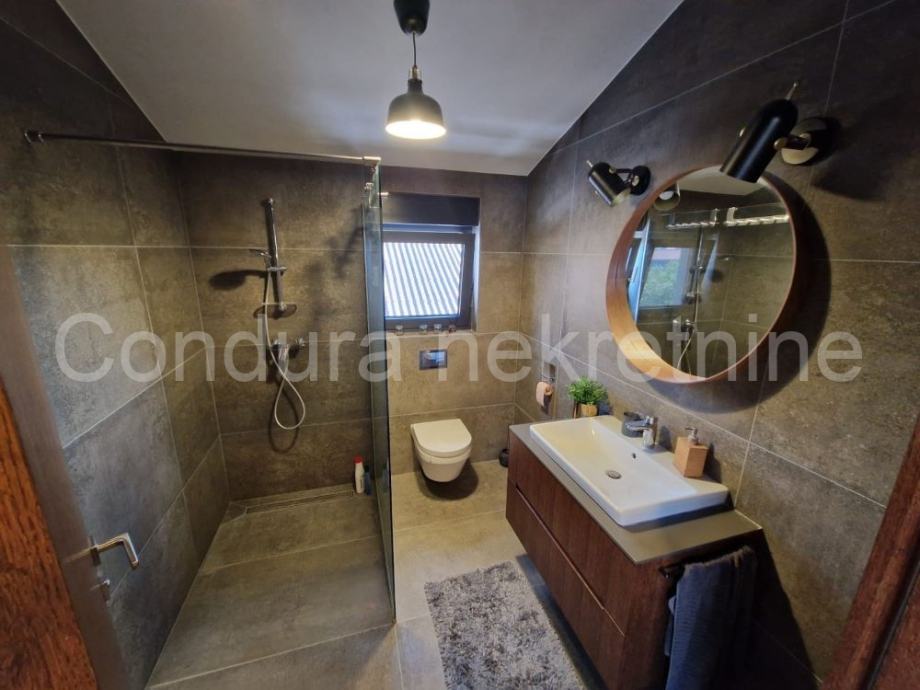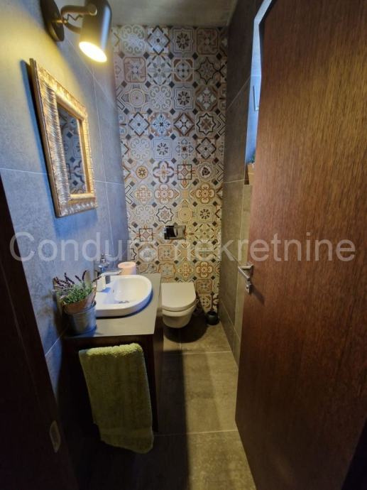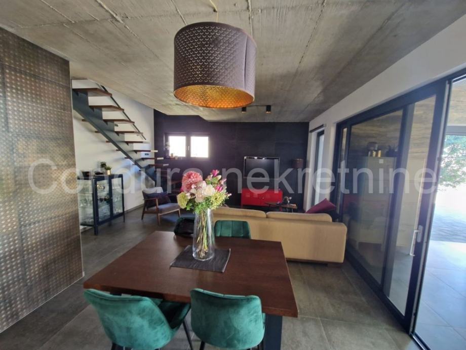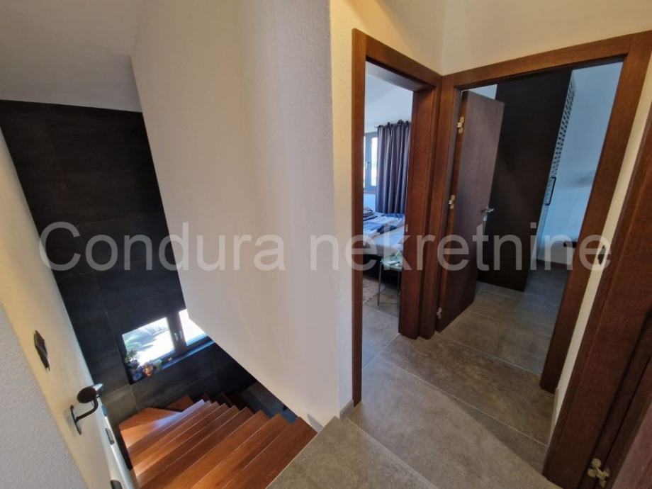 Vrhunski osmišljena interijerom i eksterijerom, s mnoštvo predivnih i promišljenih detalja. Unutrašnjost kuće se sastoji od prizemlja na kojem se nalazi prostrana kuhinja s blagovaonicom i dnevnim boravkom, ostavom, spavaćom sobom s kupaonicom, hodnikom i toaletom. Na prvom katu kuće nalaze se četiri spavaće sobe i kupaonica.