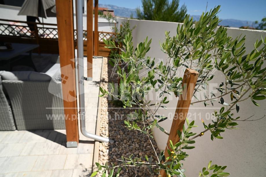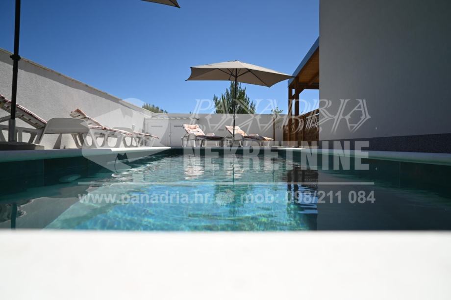 Terasa u prizemlju ima izlaz na dvorište u kojem se nalazi bazen.