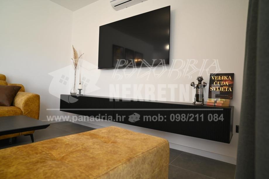Kuća ima klima uređaje u svakoj prostoriji te podno grijanje i dimnjak, debljina termoizolacije iznosi 10cm.