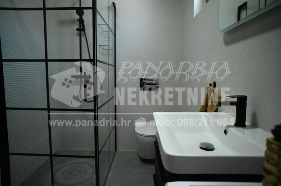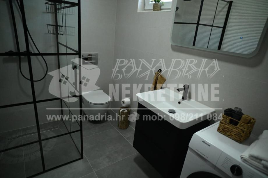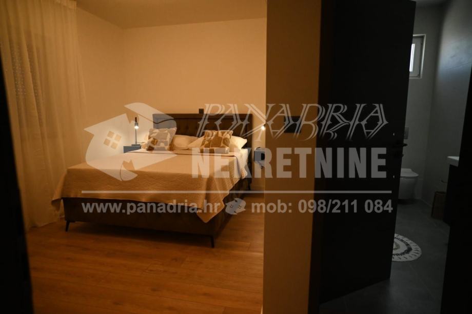 Unutarnje stepenište vodi na prvi kat, na prvom katu su smještene dvije spavaće sobe sa vlastitom kupaonicom te ostava sa potrebnim priključcima za perilicu i sušilicu rublja.
