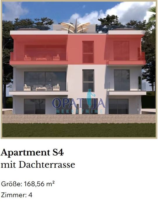 Stan S4 u zgradi 2 nudi 168,56 m² vrhunske stambene površine, u kombinaciji s prostranom krovnom terasom od 55,26 m². Nekretnina se ističe neometanim, spektakularnim panoramskim pogledom na more i idealnom južnom orijentacijom.