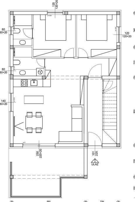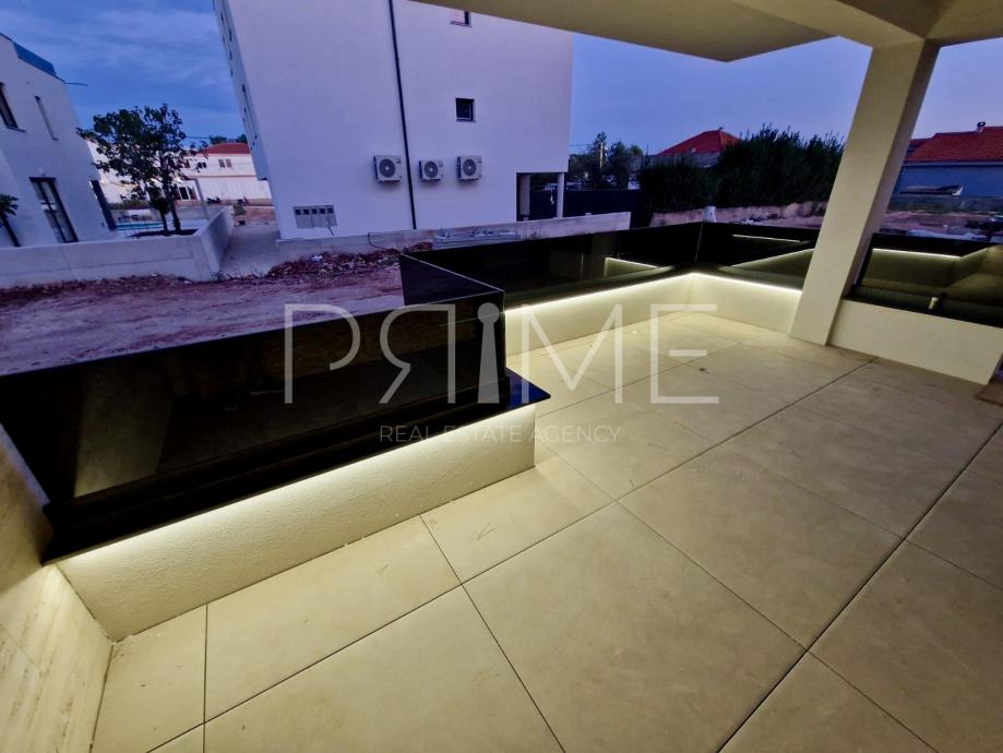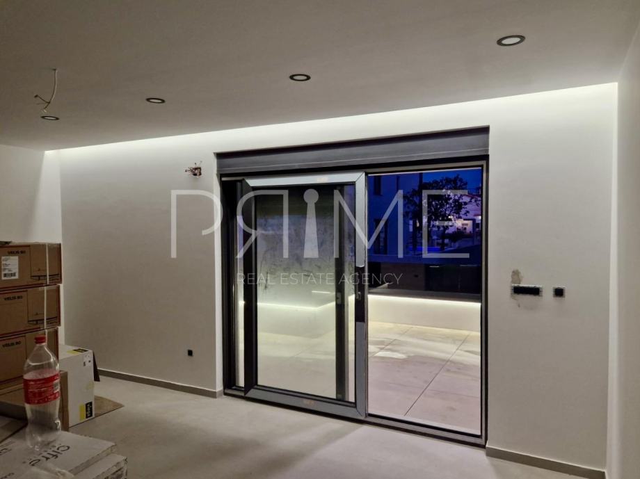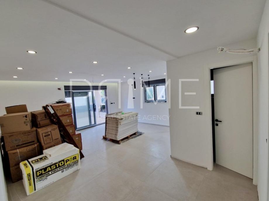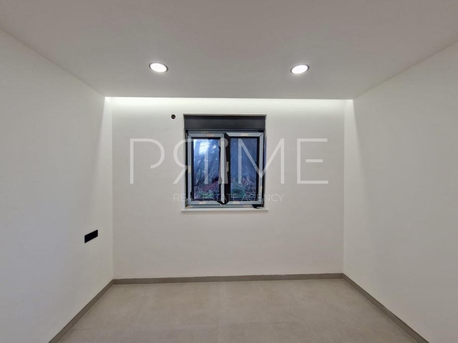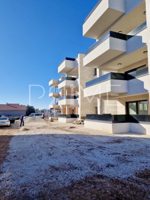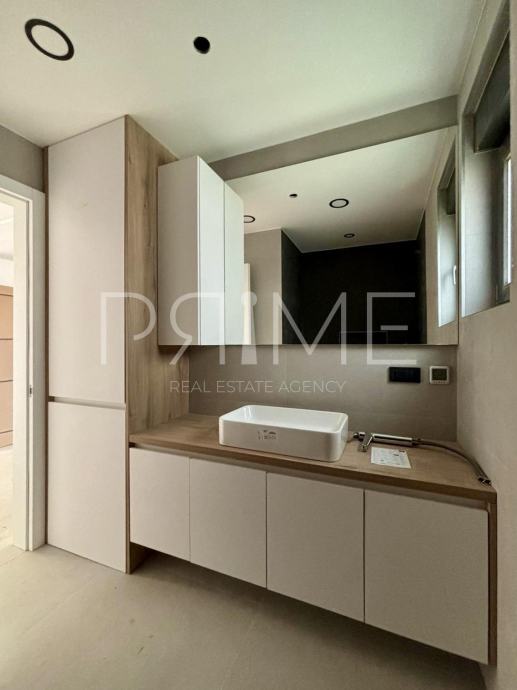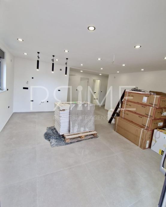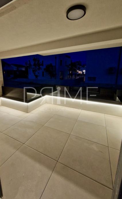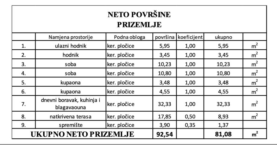 Stan površine 81,08 m2 sastoji se od kuhinje, blagovaone, dnevnog boravka, dvije spavaće sobe, dvije kupaonice i natkrivene terase. Stanu pripada jedno vanjsko parkirno mjesto površine 12,5 m2 (koje se obračunava po koeficijentu 0,20 te tad iznosi 2,5 m2 koji se dodaju neto prodajnoj površini stana) . Nalazi se u prizemlju manje stambene zgrade od ukupno 3 stambene jedinica. U izgradnji i opremanju su se koristili isključivo najkvalitetniji materijali od renomiranih proizvođača. Cijeli stan je klimatiziran te ima električno podno grijanje u kupaonicama. Neki od materijala i opreme korištenih u izgradnji i opremanju su: rolete na struju, komarnici,10 cm stiropor izolacija na fasadi ,ograda od kaljenog stakla, kamen travertin, keramika dimenzija 90x90, geberit, grohe sanitarije, namještaj u kupaonicama rađen po mjeri, led ambijentalna rasvjeta u svim sobama i na terasi, priprema za jacuzzi na terasi.. u tijeku su završni radovi na zgradi te će biti useljiva do 01.03.2025 godine. Više informacija na upit.