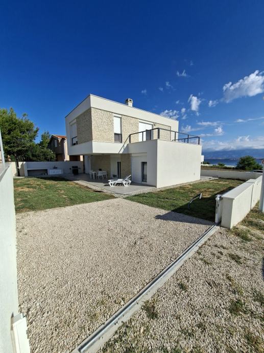 Vir novogradnja. U ponudi samostojeća kuća katnica sa garažom. Otvoren pogled na more koji u budućnosti ne može biti zaklonjen gradnjom drugog objekta. Kuća je udaljena 50m od gradske plaže na mirnom i tihom djelu otoka Vira.