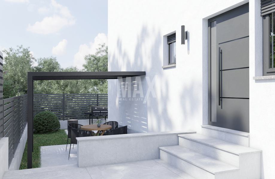 Zgrada ima 4 stana,od kojih 2 u prizemlju i 2 na katu koji svaki ima izlaz na vlastitu terasu.Ulaz u zgradu je sa sjeverne strane,dok su balkoni orijentirani na južnu stranu.