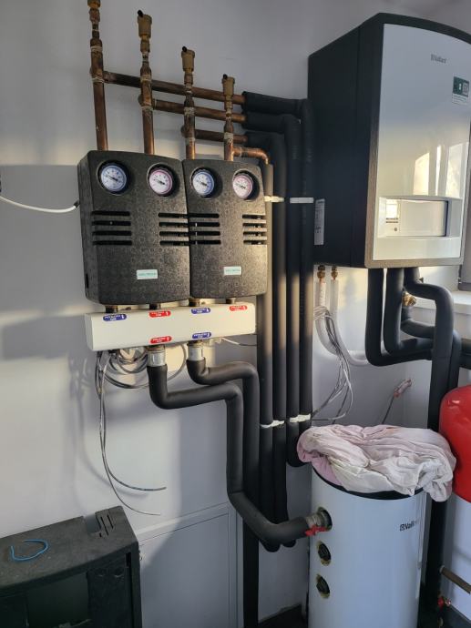 - podno grijanje i hlađenje kuće pomoću električne dizalice topline i ventilokonvektora,