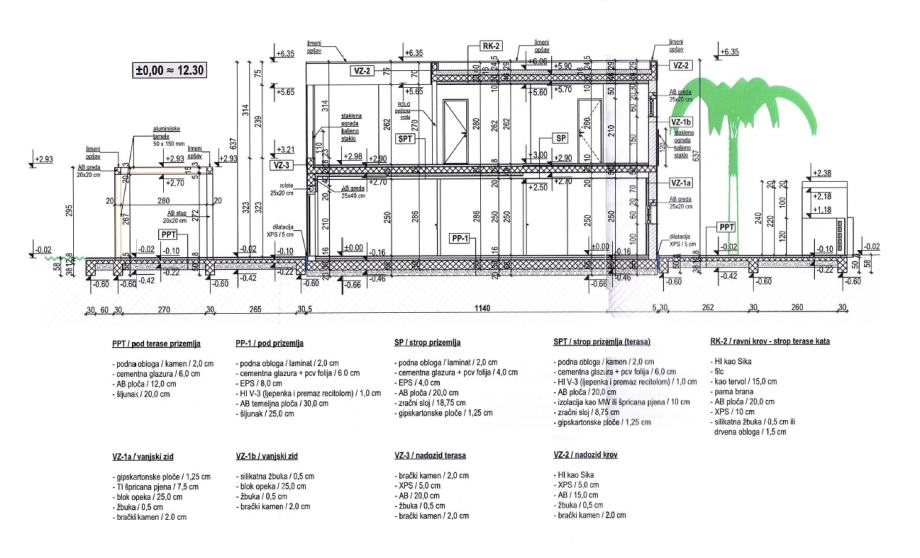 - kuća se sastoji od prizemlja i kata,