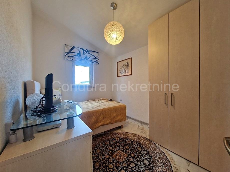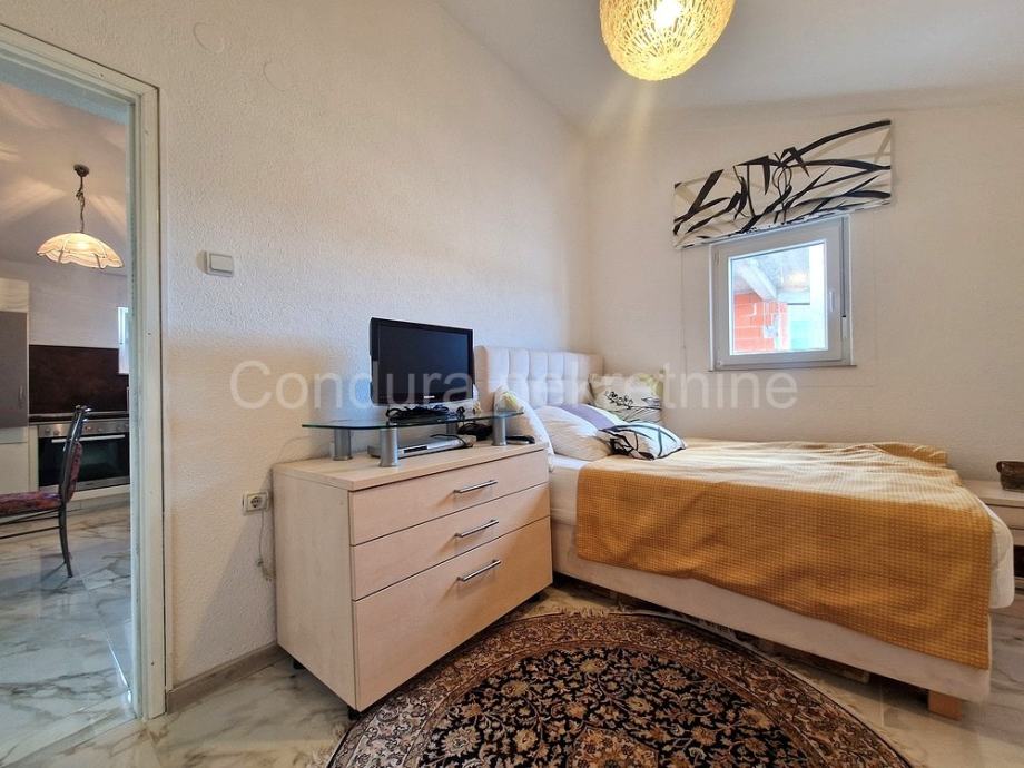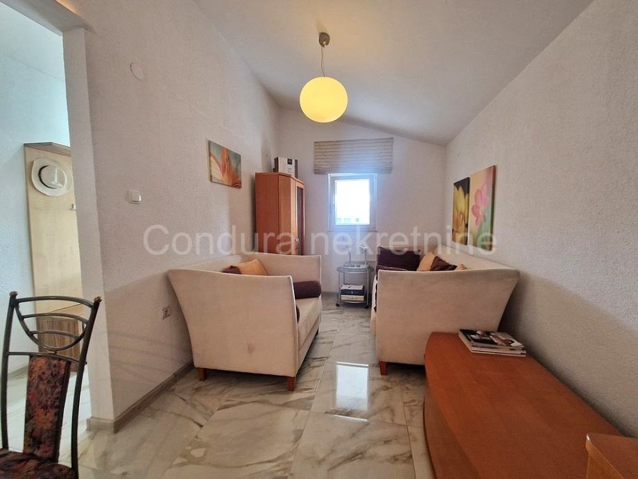 Atraktivan apartman posebno zbog svoje lokacije, blizine mora i svih svakodnevnih sadržaja te centra mjesta. S prekrasnim pogledom na more s terase.
