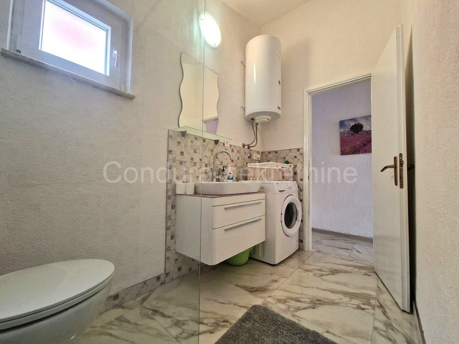 Dodatni prostori: Ispod stepenica nalazi se ostava koja je zajednička s gornjim apartmanom, u kojoj se nalazi pumpa za vodu. Također je zajedničko korištenje roštilja u dvorištu.