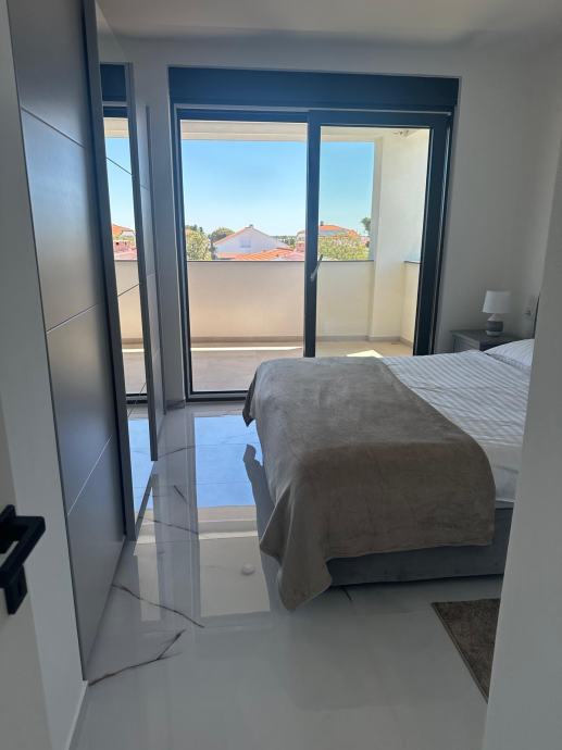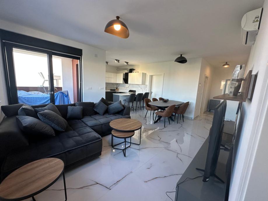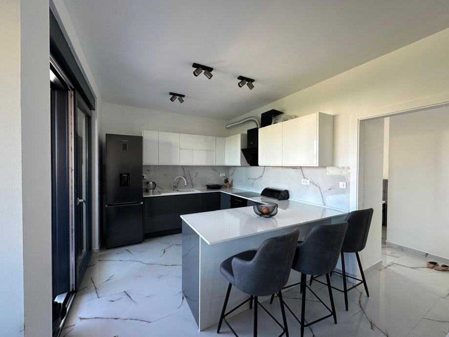 Apartman se nalazi na prvom katu zgrade. Na jednoj etaži se nalazi dnevni boravak sa kuhinjom i blagovaonom, spavaća soba, kupaona i lođa. Unutarnje stepenice vode na kat kuće gdje se nalaze dvije spavaće sobe sa vlastitim kupaonama i prekrasna prostrana terasa.