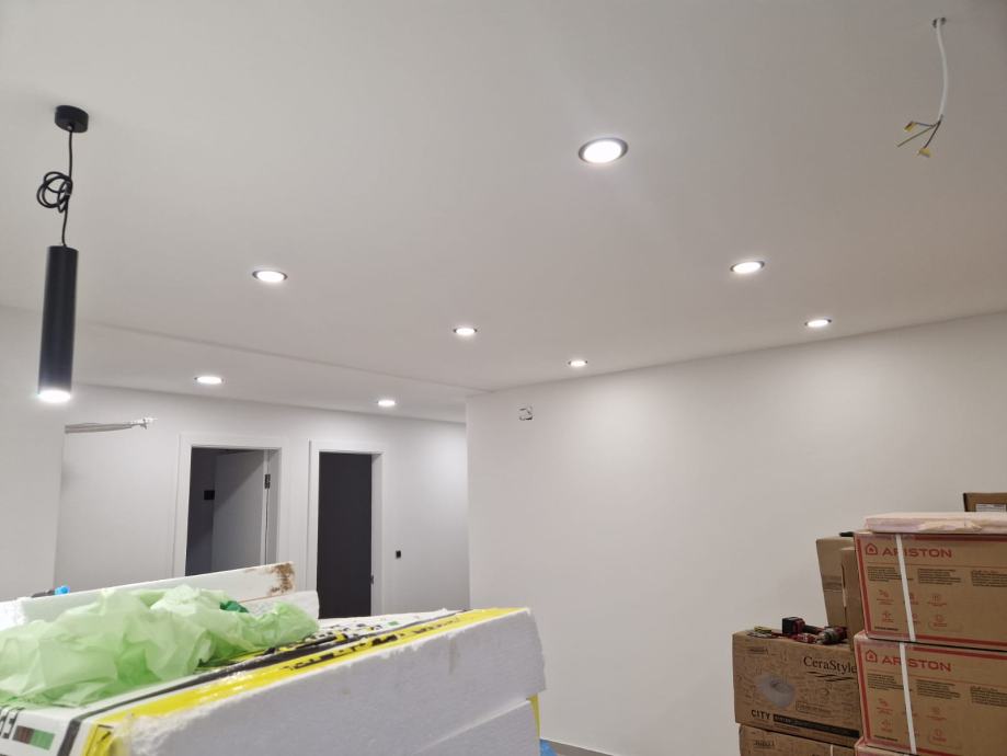 Knauf stropovi s ugrađenom LED radnom rasvjetom u svim prostorijama i LED ambijentnom rasvjetom (LED trake) u spavaćim sobama i dnevnom boravku