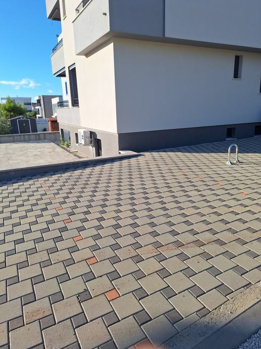 Sastoji se od predprostor (hodnik) dužinom stana, kuhinja dnevni boravak, spavaća soba i kupatilo. Apartmanu pripada 30m² uređene i poploćene okućnice i jedno parkirno mjesto. Krovna terasa sa koje se pruža otvoren pogled na more,na kojoj je moguće staviti gril, tuš ili nadstrešnicu i pergolu.