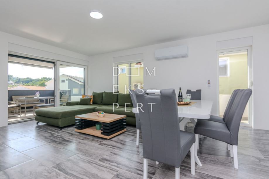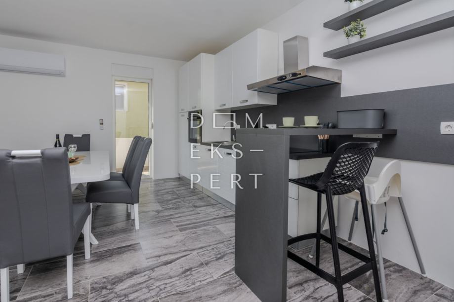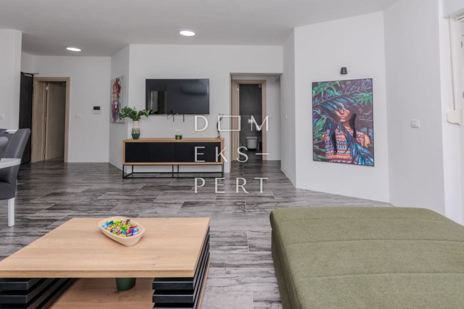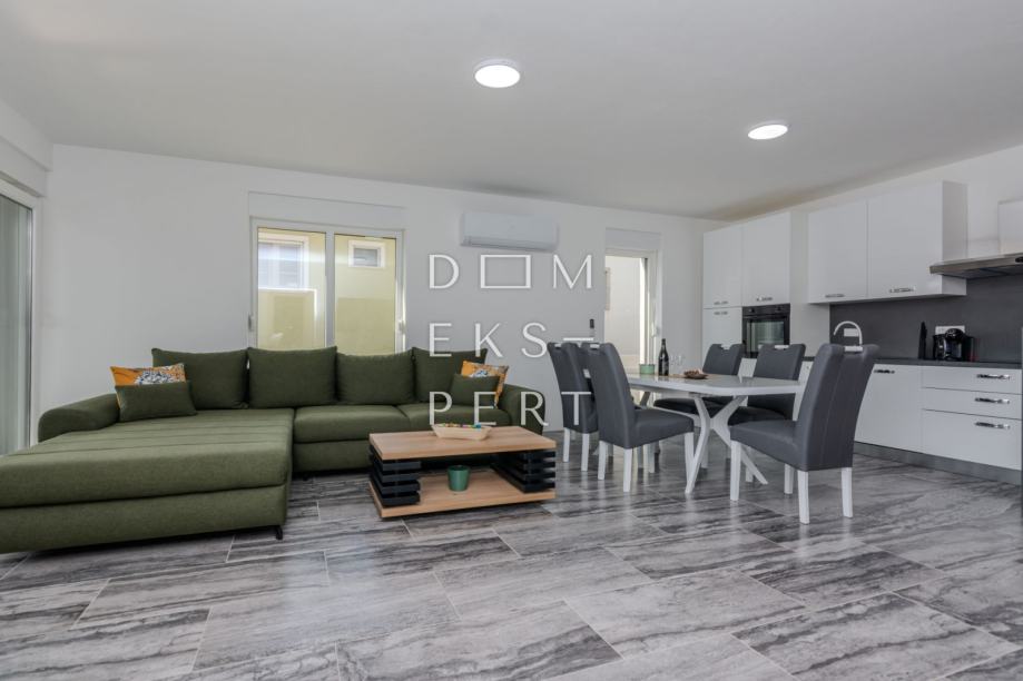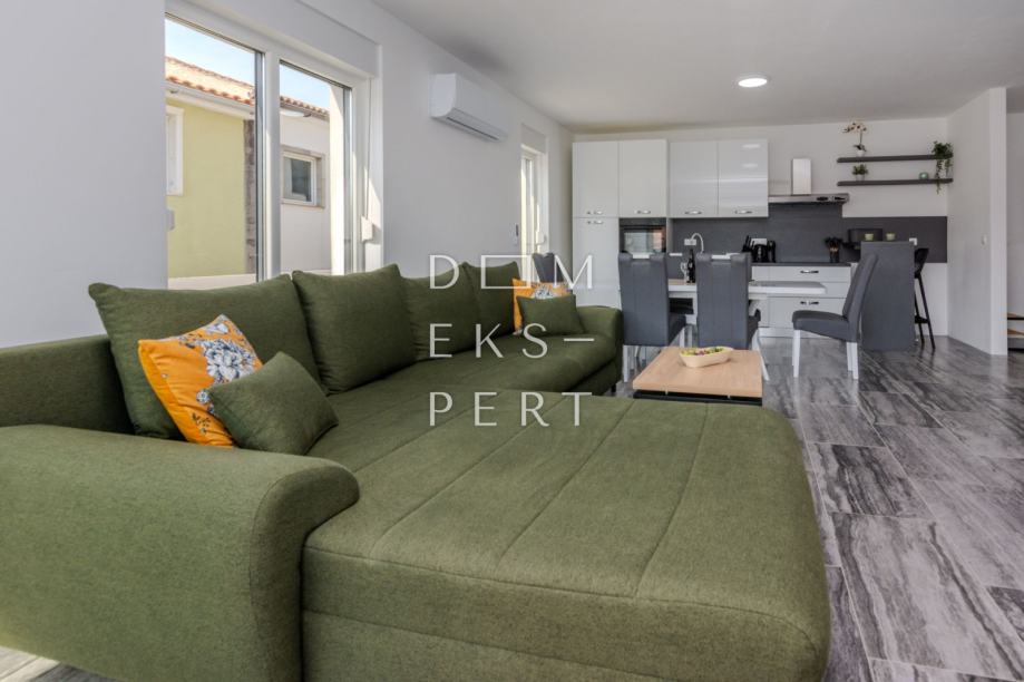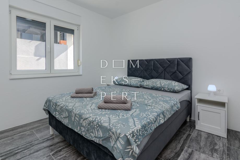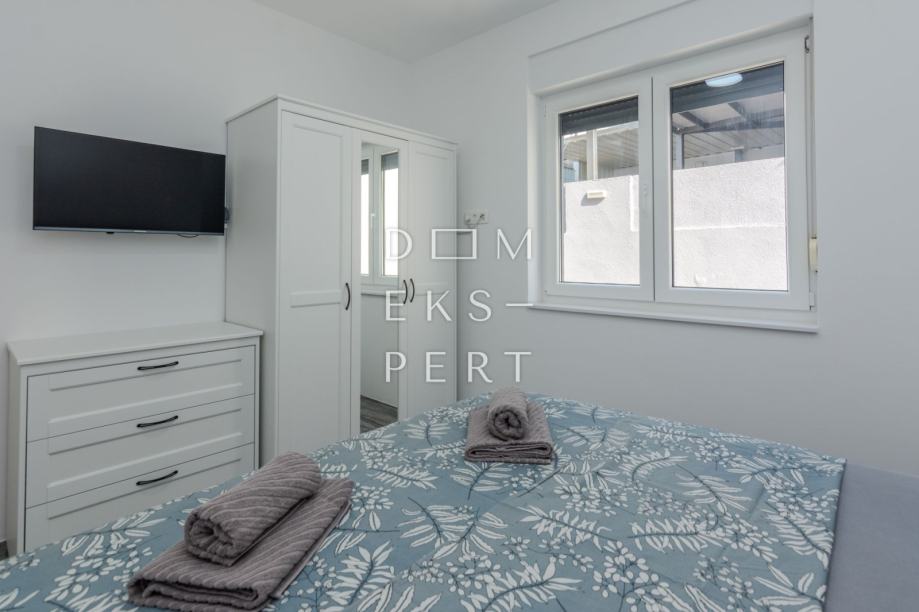 Prodaje se potpuno uređen četverosobni apartman s privatnim dvorištem i osiguranim parking mjestom.