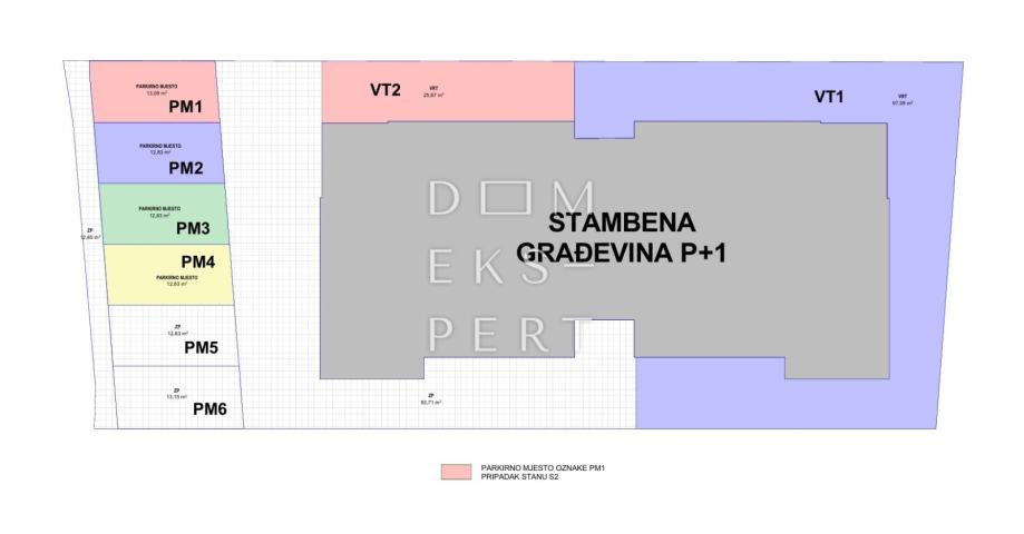 Stan se nalazi u manjoj stambenoj zgradi koja je izgrađena 2023. godine, a sastoji se od prizemlja i kata.