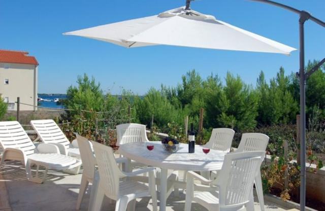 Prodaje se prekrasna kuća s apartmanima u Viru,predio Radovanjica. udaljena 70 m od mora, 200 m od samog centra mjesta. Kuća ima 202m2 stambene površine i 525 m2 okućnice. Kuća se sastoji od dvije etaže.Prizemlja koji ima dvije velike garaže svaka 29 m2 i dva dvosobna apartmana. Svaki apartman ima dvije spavaće sobe, kuhinju s blagovaonom, dnevni boravak, kupaonu s wc-om, te terasu sa pogledom na more. Na katu se nalaze dva dvosobna apartmana identična kao u prizemlju. Kuća je kompletno namještena, klimatizirana, dobro uhodana u iznajmljivanju apartmana za turizam i kao takva se prodaje. Energetski certifikat A. Kuća je kvalitetno građena sa lijepo uređenim dvorištem, koji ima dovoljno parkirnog mjesta za sve smještajne jedinice. Vlasništvo 1/1. Cijena 850.000 €. Više informacija na upit.