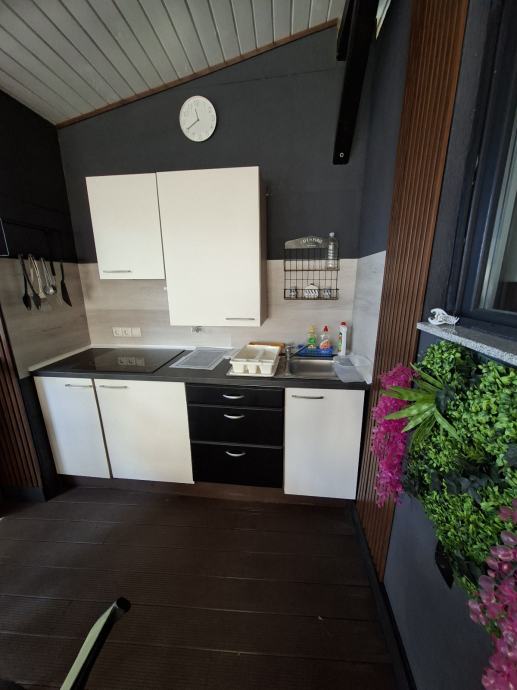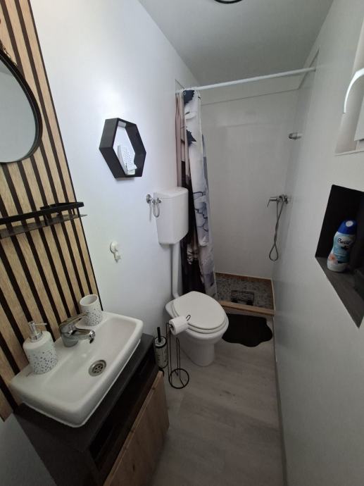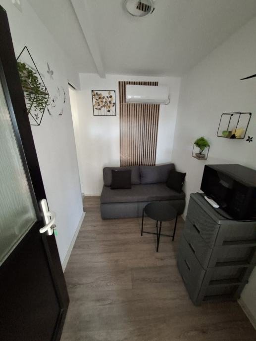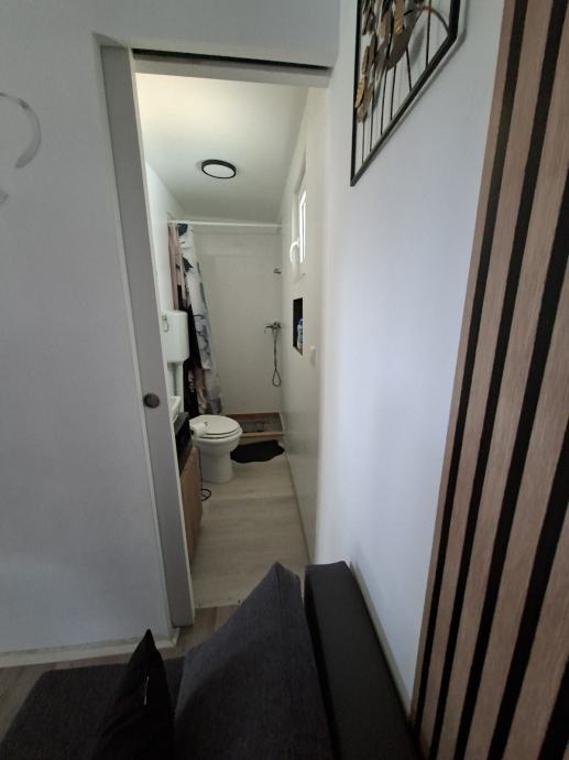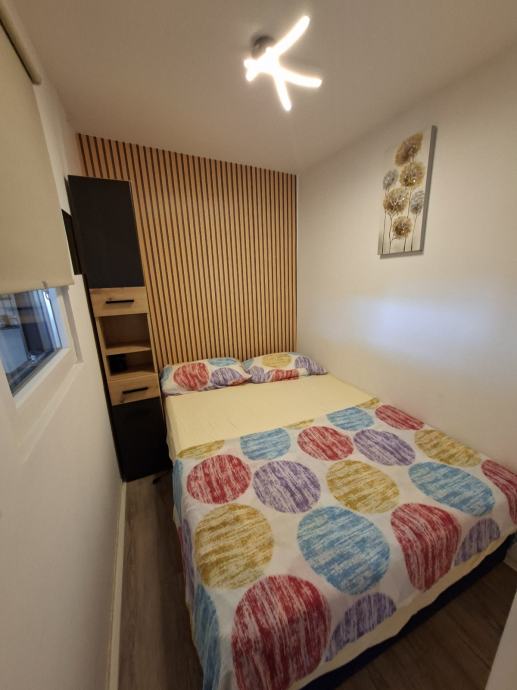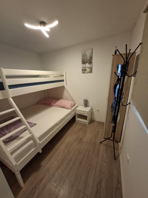 Dvosobni apartman u montažnom objektz drugi red odo mora sastoji se od velike terase,kuhinje,dvije spavaće sobe i kupatila. Objekt ima termo fasadu i keramičke pločice.