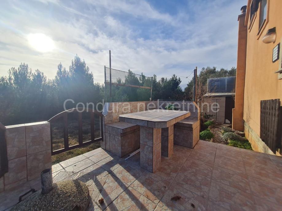 U prostranom dvorištu s mnoštvom zelenila, uz kuću se nalazi i grill, prostor za sjedenje te dva spremišta. Također ima dovoljno mjesta za parkiranje nekoliko automobila.