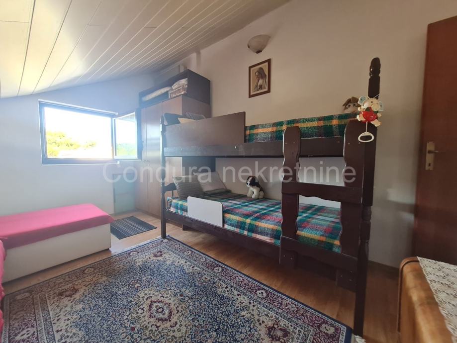 Prodaje se samostojeća kuća površine 106 m2, sagrađena na zemljištu veličine 298 m2, na odličnoj lokaciji u mirnijem dijelu naselja a svega 300 m od mora i prve plaže.