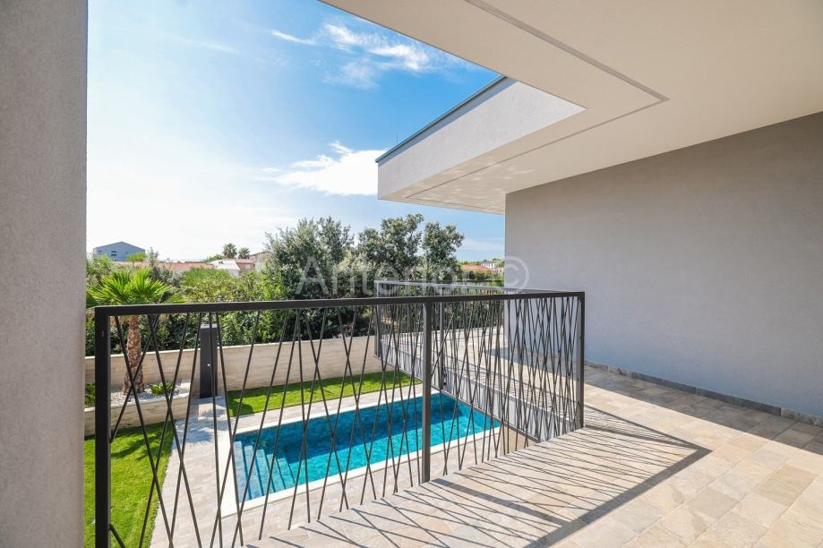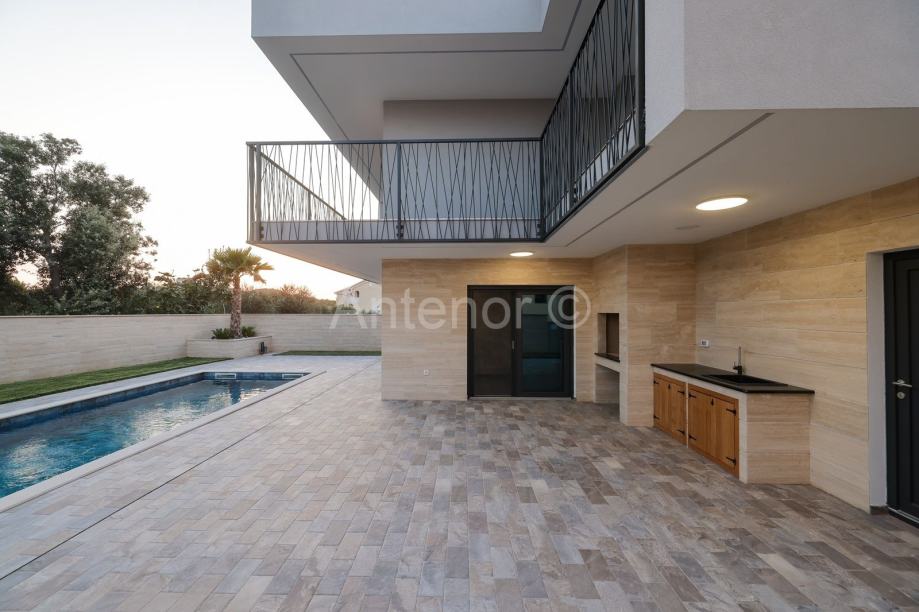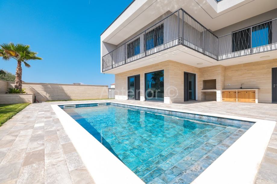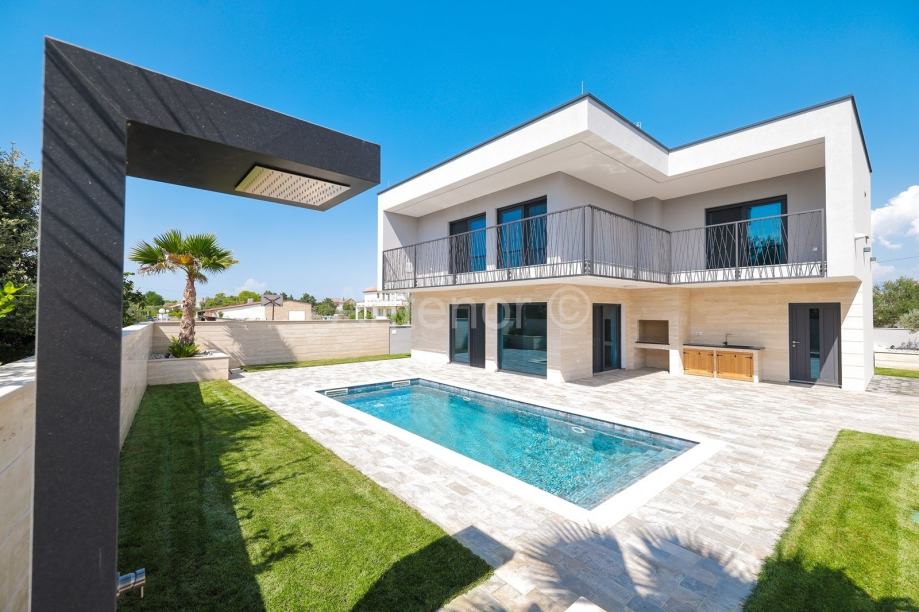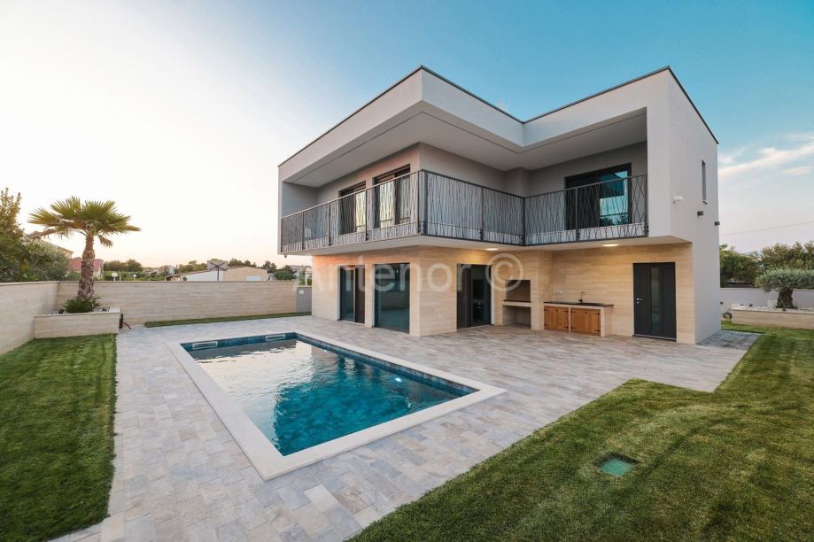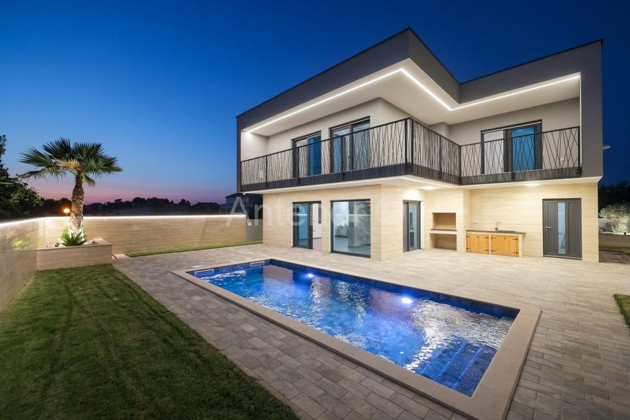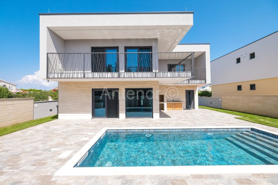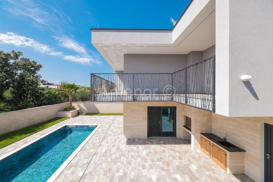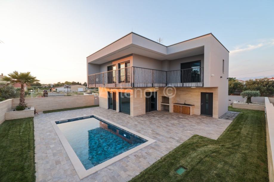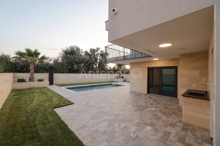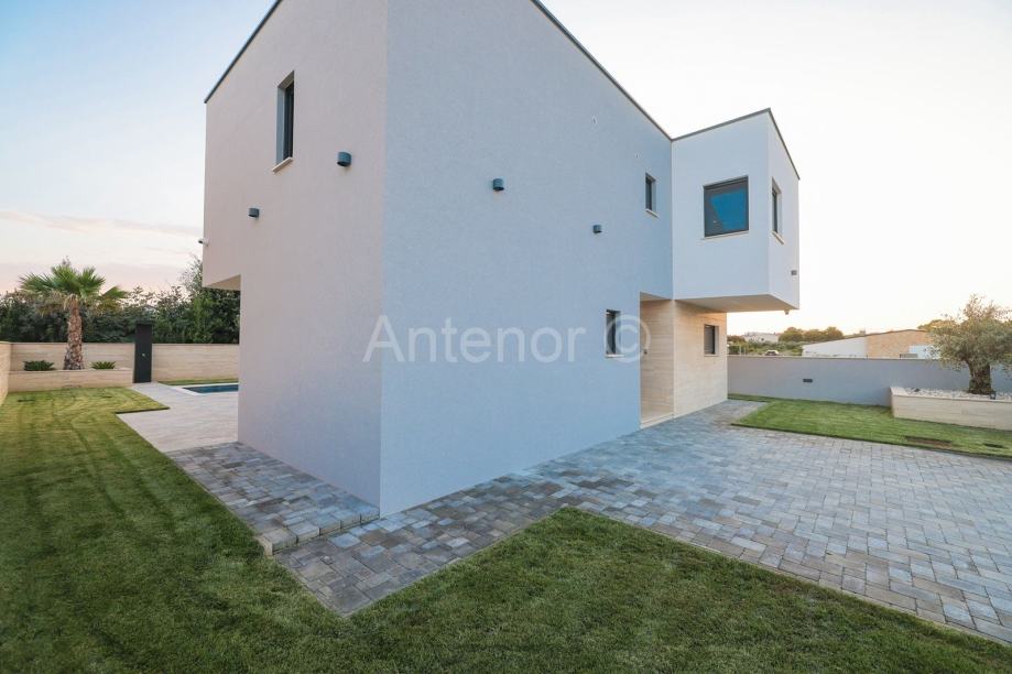 Kuća ima uređenu okućnicu sa dva popločana parkirna mjesta, bazen 21 m2, jacuzzi. Od glavne plaže Jadro udaljena je 950 metara. Smještena je u mirnom dijelu neposredne blizine centra (Crkva, Pošta)...