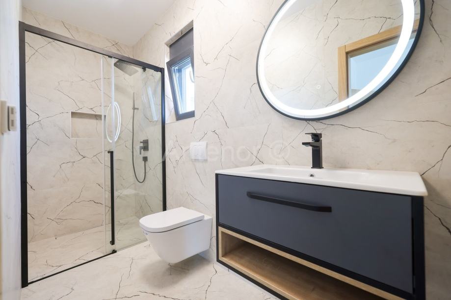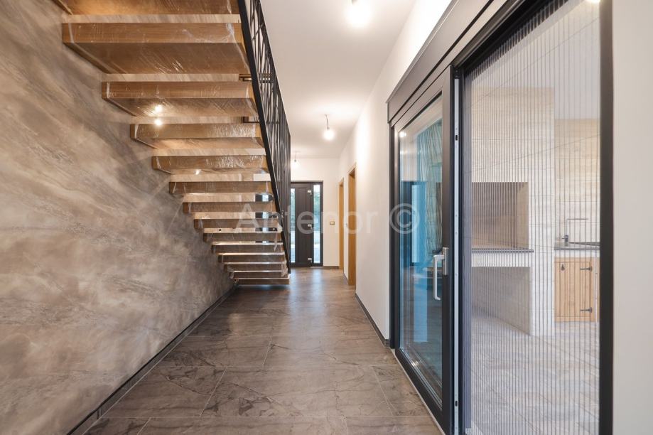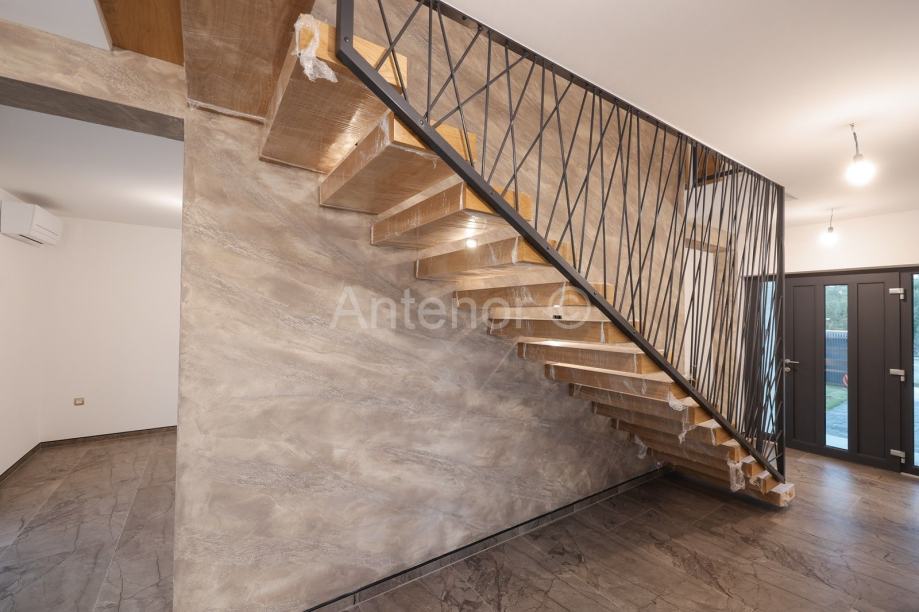 Nekretnina je izgrađena na zemljištu od 424 m2, a sastoji se od prizemlja i kata. Radi se o jednoj stambenoj jedinici sa kuhinjom, dnevnim boravkom, spremištem, wc, vešeraj, tri spavaće sobe, tri kupaonice i balkon.