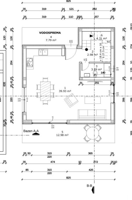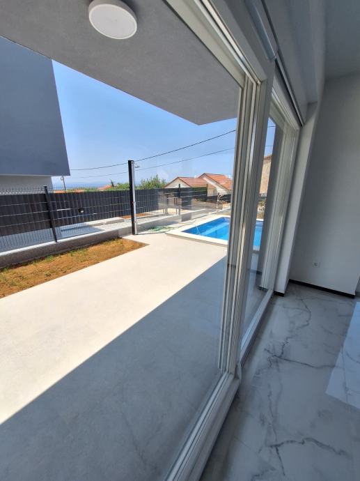 Prizemlje veliki dnevni boravak kuhinja u cijelini opan space model, bazen i toalet. Unutarnje stepenište vodi na prvi kat gdje su tri spavaće sobe svaka soba ima kupatilo.