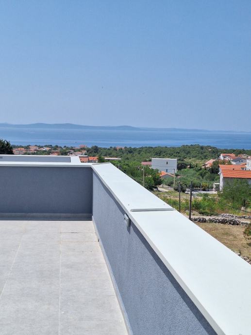 Vir luxuzna novogradnja, smostojeća kuća katnica sa bazenom i krovnom terasom sa koje se pruža predivan pogled na more na južnu stranu otoka Vira, Zadarski arhipelag i otoke.