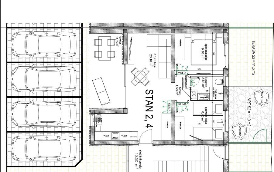 Na prodaju je dvosobni stan oznake S4 koji se nalazi na prvom katu stambene zgrade. Vrhunska kvaliteta izgradnje i opreme vidljiva je od samog početka gradnje. U građenju zgrade su se koristiti visoko kvalitetni materijali u skladu sa najvišim standardima gradnje (toplinska izolacija, vrhunska stolarija, vrhunske podne obloge...)