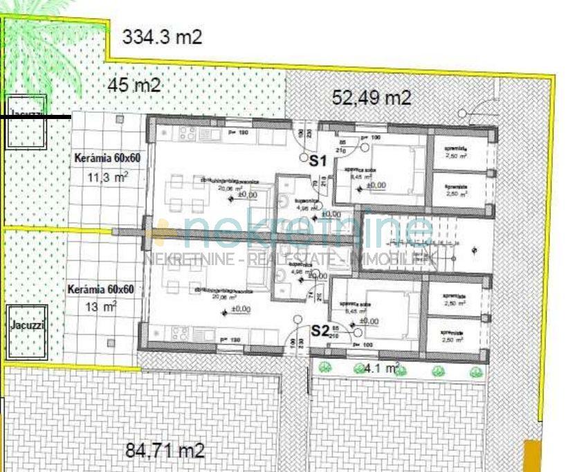 Četverosobni stanovi na 2. katu imaju ekskluzivne krovne terase s kupaonicom, WC-om i predviđenim jacuzzijem