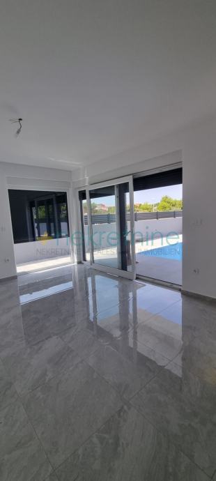 Kuća se prostire na ukupnoj neto površini od 156 m² i nudi savršen raspored prostora. U prizemlju se nalazi hodnik, prostrana kuhinja s blagovaonicom i dnevnim boravkom, WC, ostava te velika natkrivena terasa idealna za opuštanje i uživanje u vanjskim trenucima.