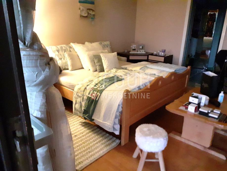Kuća je koncipirana kao dvoetažni stan koji se sastoji od hodnika, ostave, kupaonice, toaleta, kuhinje s blagovaonicom i velikim dnevnim boravkom, prostorije s kaminom (koristi se kao mini teretana), 4 spavaće sobe, 2 kupaonice i velike terase 60m2 s lijepim pogledom.