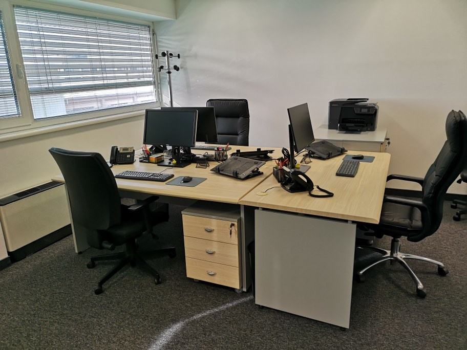 Uredski prostor potpuno je moderno uređen sa svom opremom koja Vam je potrebna za rad (izuzev osobnog računala).