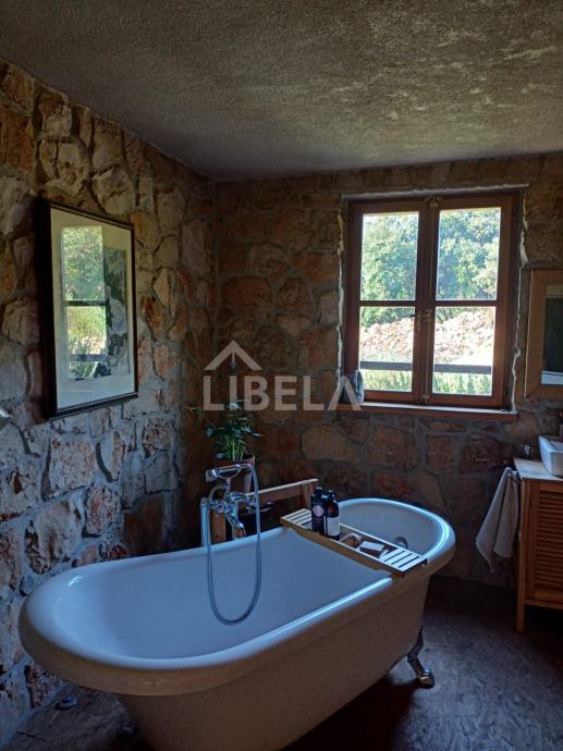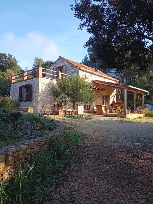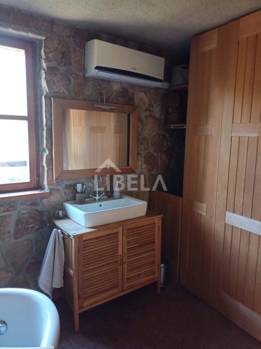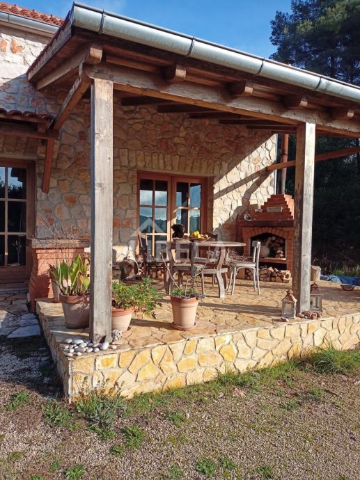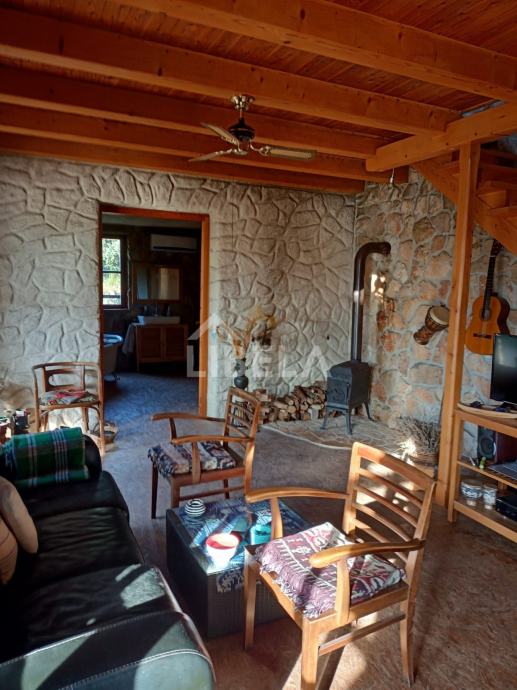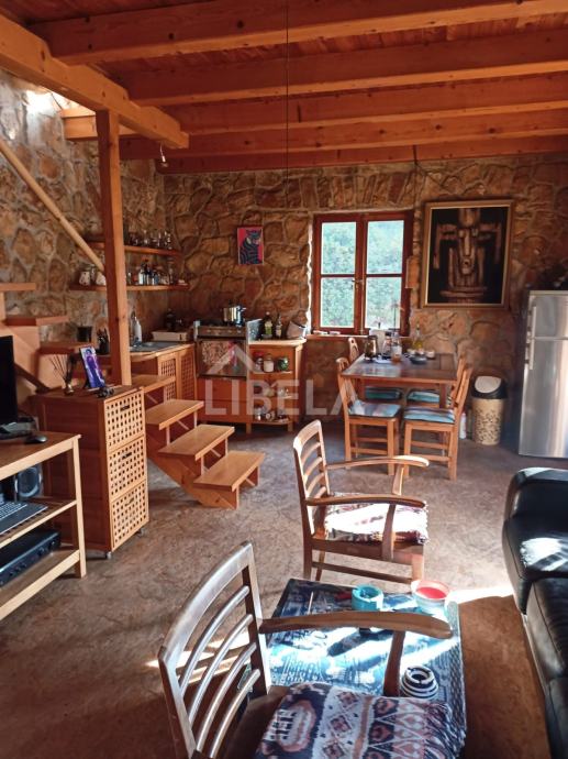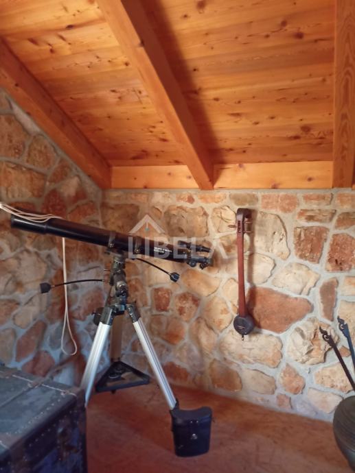 Kuća ima vodu, struju na solarne panele, kanalizaciju, te parking u samostojećoj garaži od oko 20m2. Udaljena je od prometnice, sakrivena u borovu šumicu. Ispred kuće prostire se 12.000m2 visoko plodne zemlje pogodne za npr. uzgoj autohtonih vinskih sorti.