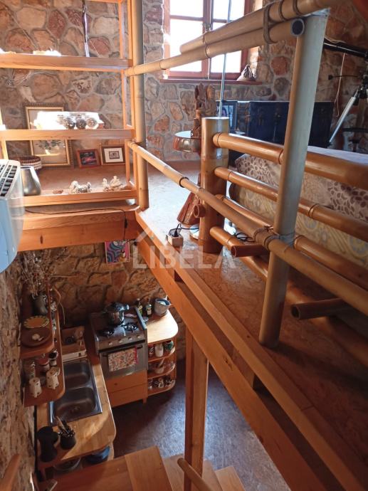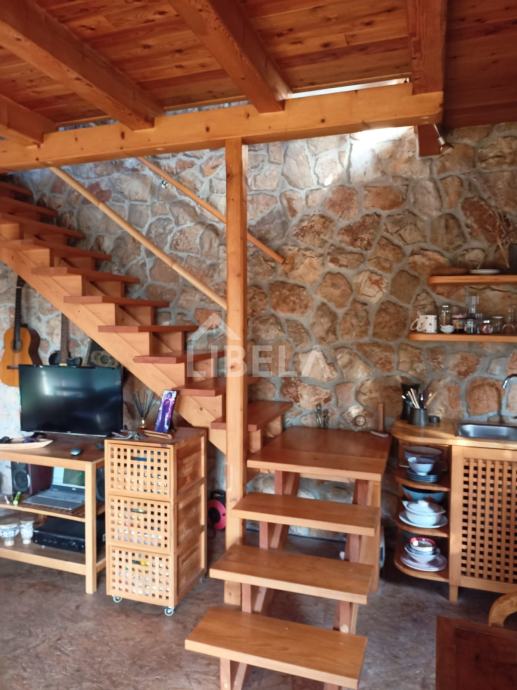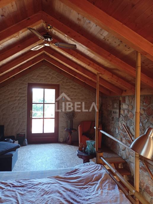 Samostojeća kuća sa 1 prostranom spavaćom sobom na katu, izlazom na terasu s pogledom na šumu. U prizemlju se nalazi kuhinja, dnevni boravak i velika kupaona sa kadom i ugradbenim ormarima. Iz kuće se izlazi na natkrivenu terasu na kojoj se provodi većina vremena za vrijeme toplijih dana.