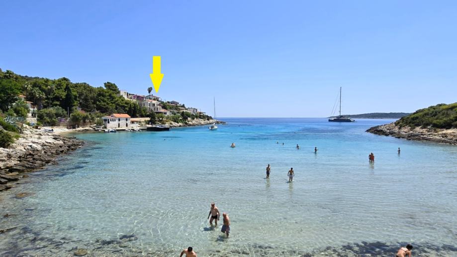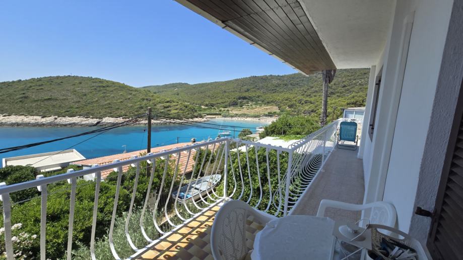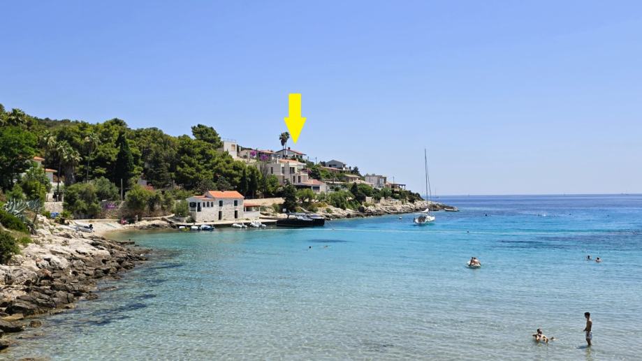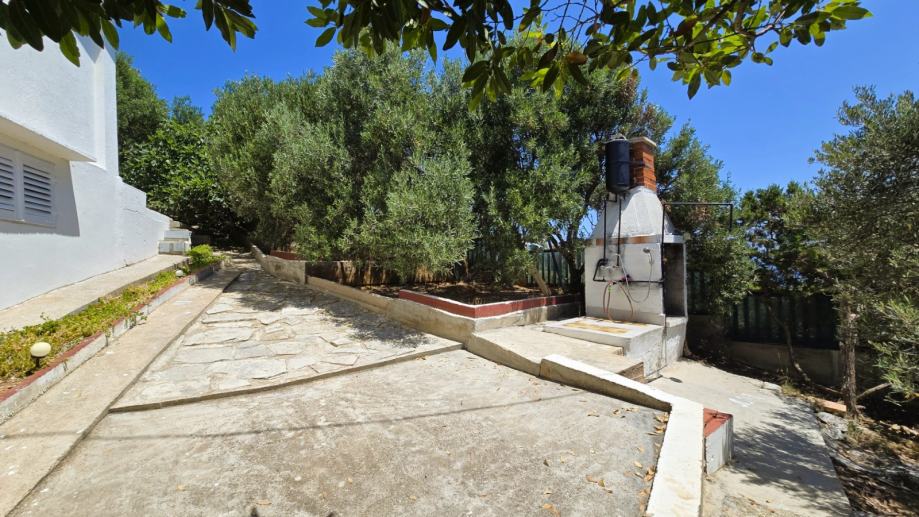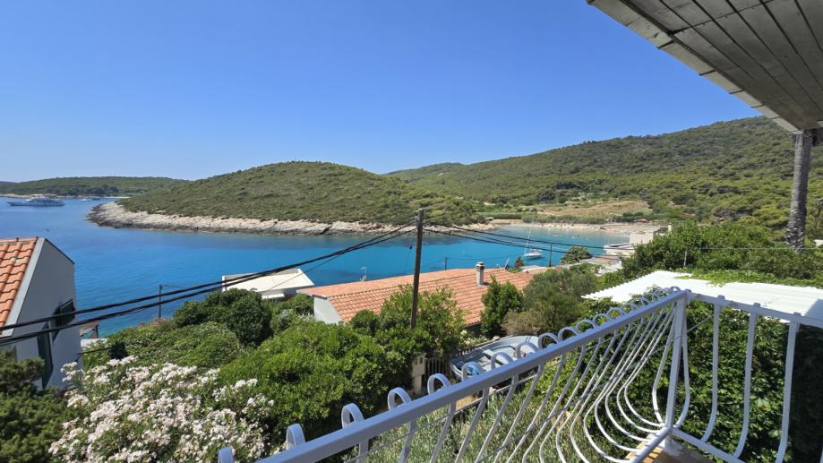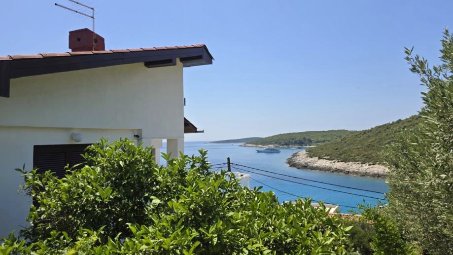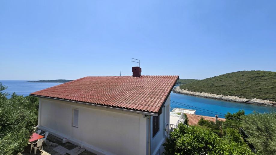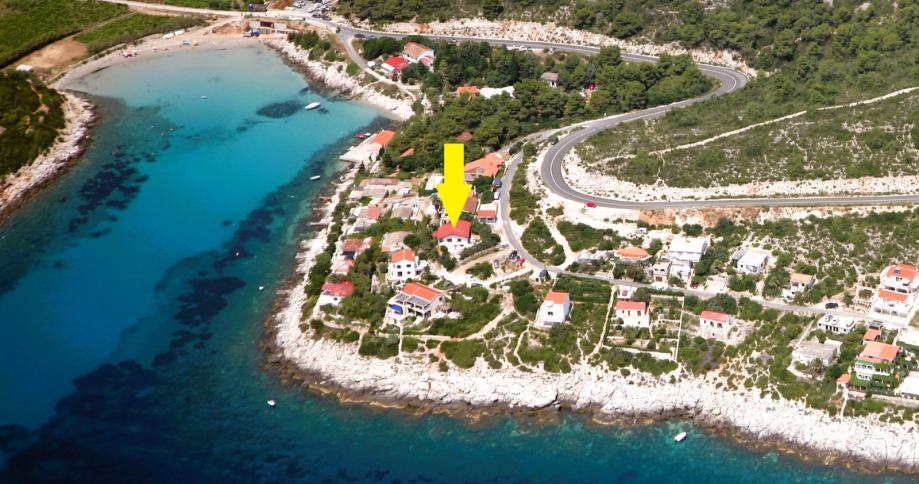 Samostojeća kuća ukupne površine cca 200 m2, smještena 3. red od mora u pješčanoj uvali Milna na istočnoj strani otoka Visa, južne oriijentacije, s prekrasnim pogledom na more i uvalu sa svih etaža, koja se sastoji od jednosobnog stana s terasom i velike ostave u prizemlju i dvosobnog stana s terasama na katu, dodatni tavanski prostor, kvalitetne betonske gradnje, na zemljištu od 510 m2, lijepi održavani mediteranski vrt sa stablima maslina i limuna i kaminom, 2 parking mjesta, mogućnost nadogradnje.