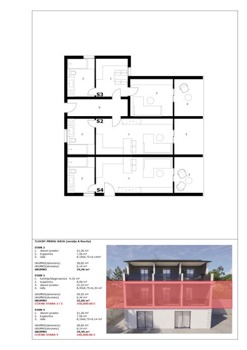 -Različite kvadrature (od 34,96 m² do 81,27 m²)